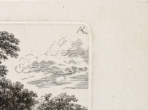 Um 1800. Radierung / Strichätzung. – Landschaftsdarstellung, von Anton Kölbl. – 17 x 23 cm (Blatt), 10,5 x 14,4 cm (Darstellung / Platte).