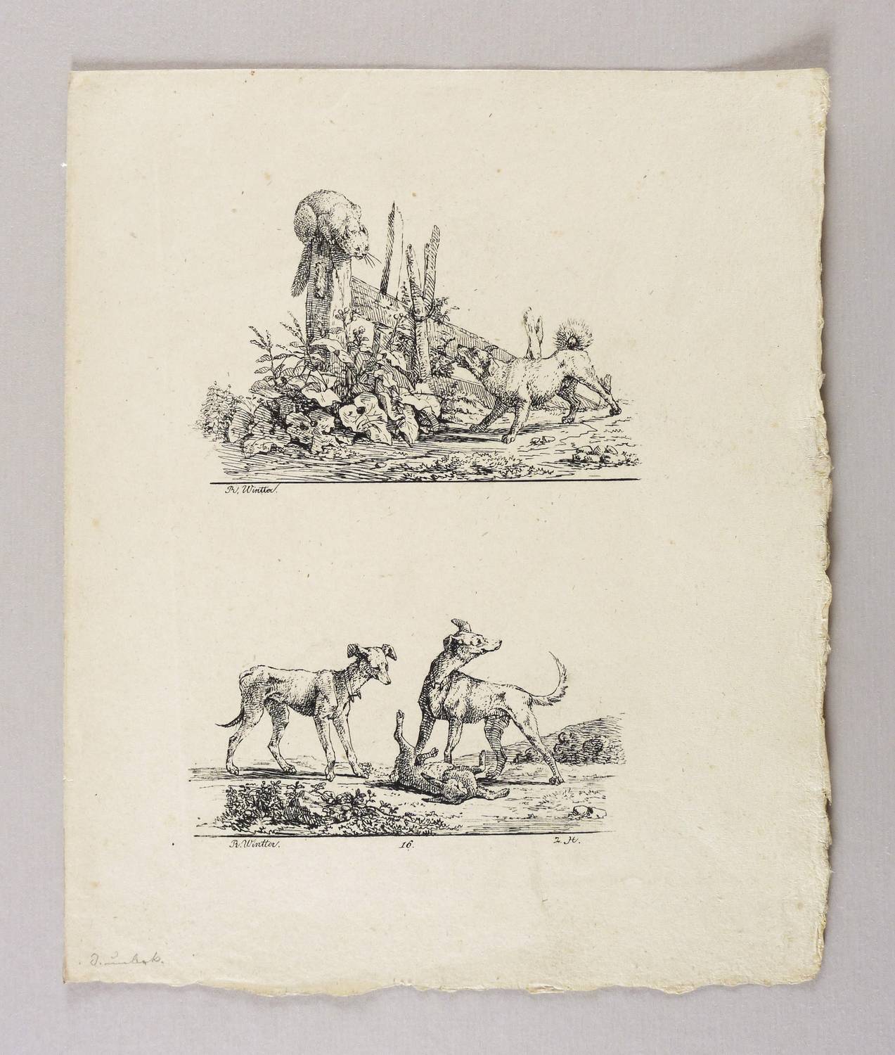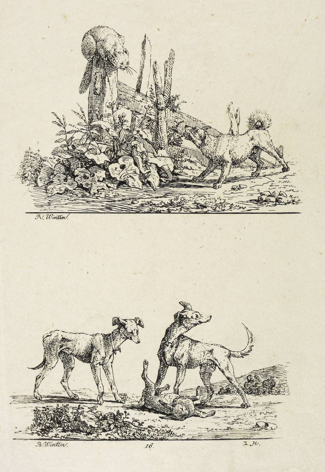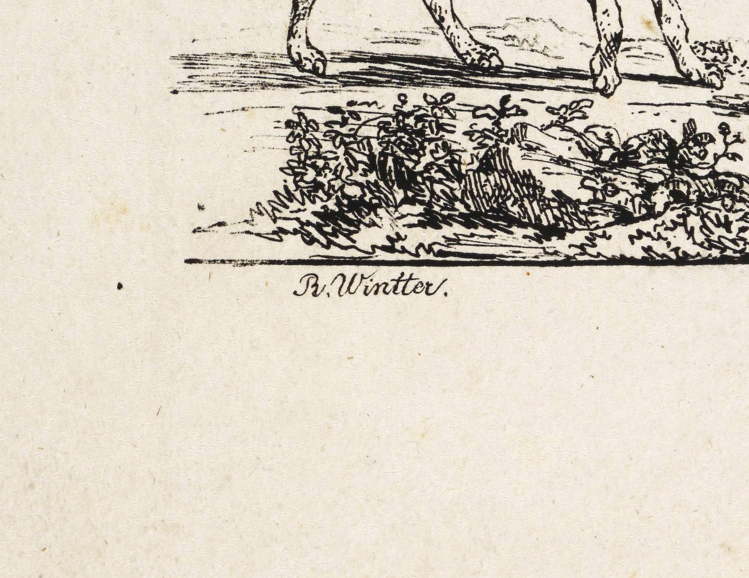Um 1815. Lithografie / Federlithografie. – Historische Tierdarstellung, von Raphael Winter. – 8,4 x 12,9 cm (Darstellung / erste), 26,5 x 22 cm (Blatt), 6,1 x 12,5 cm (Darstellung / zweite).