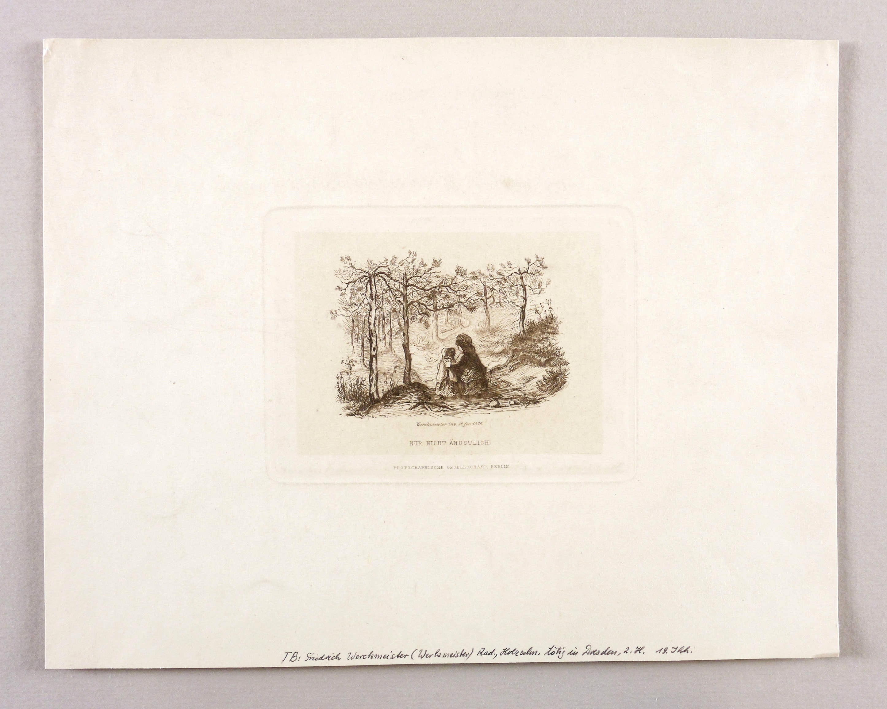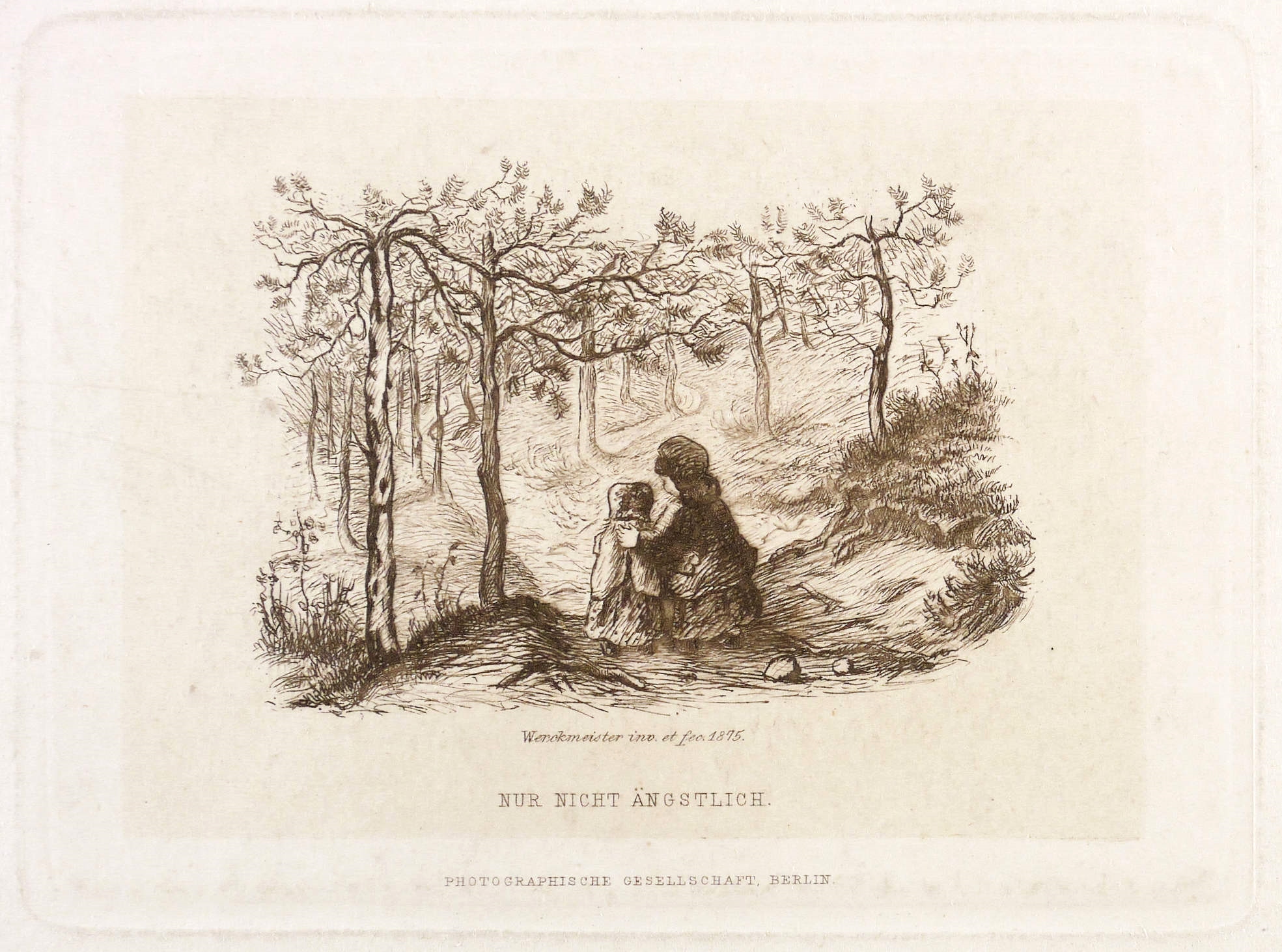 Unterhalb der Darstellung signiert und datiert: ″Werckmeister inv. et fec. 1875.″ Darunter Titel und Verlegeradresse Photographische Gesellschaft Berlin. – Blatt mit leichten Gebrauchsspuren. Ingesamt aber guter Zustand.