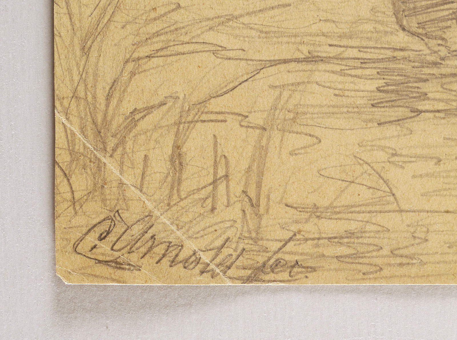 Um 1860. Zeichnung / Bleistiftzeichnung, auf rotbraunem Karton. – Historische Ortsansicht, von Carl Johann Arnold. – 29 x 31 cm (Darstellung / Blatt).