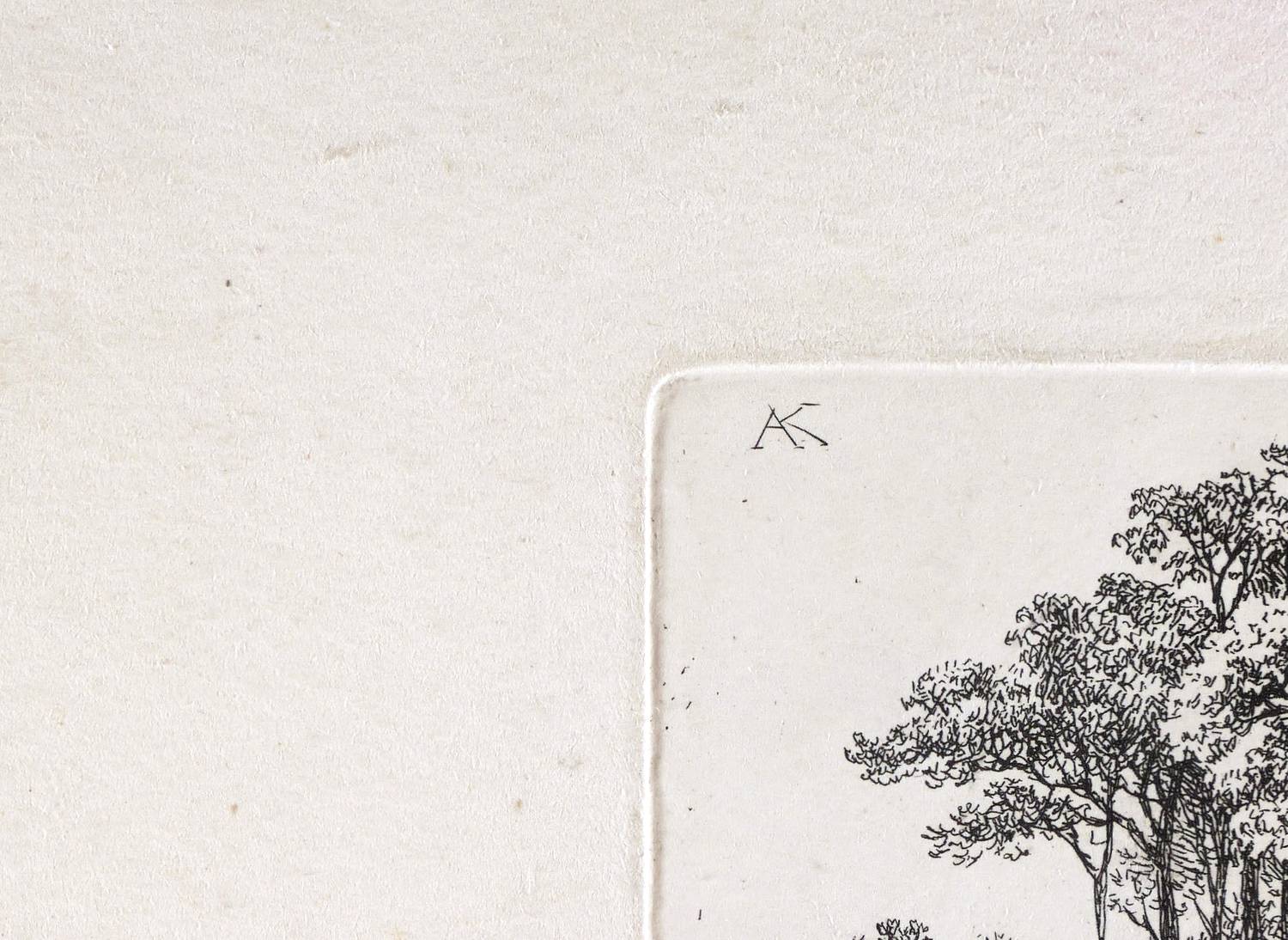 Rechts oben monogrammiert: ″AK″. – Breitrandiges Blatt im Randbereich schwach angeschmutzt. Verso mit geringen Montageresten. Sonst aber guter Zustand.