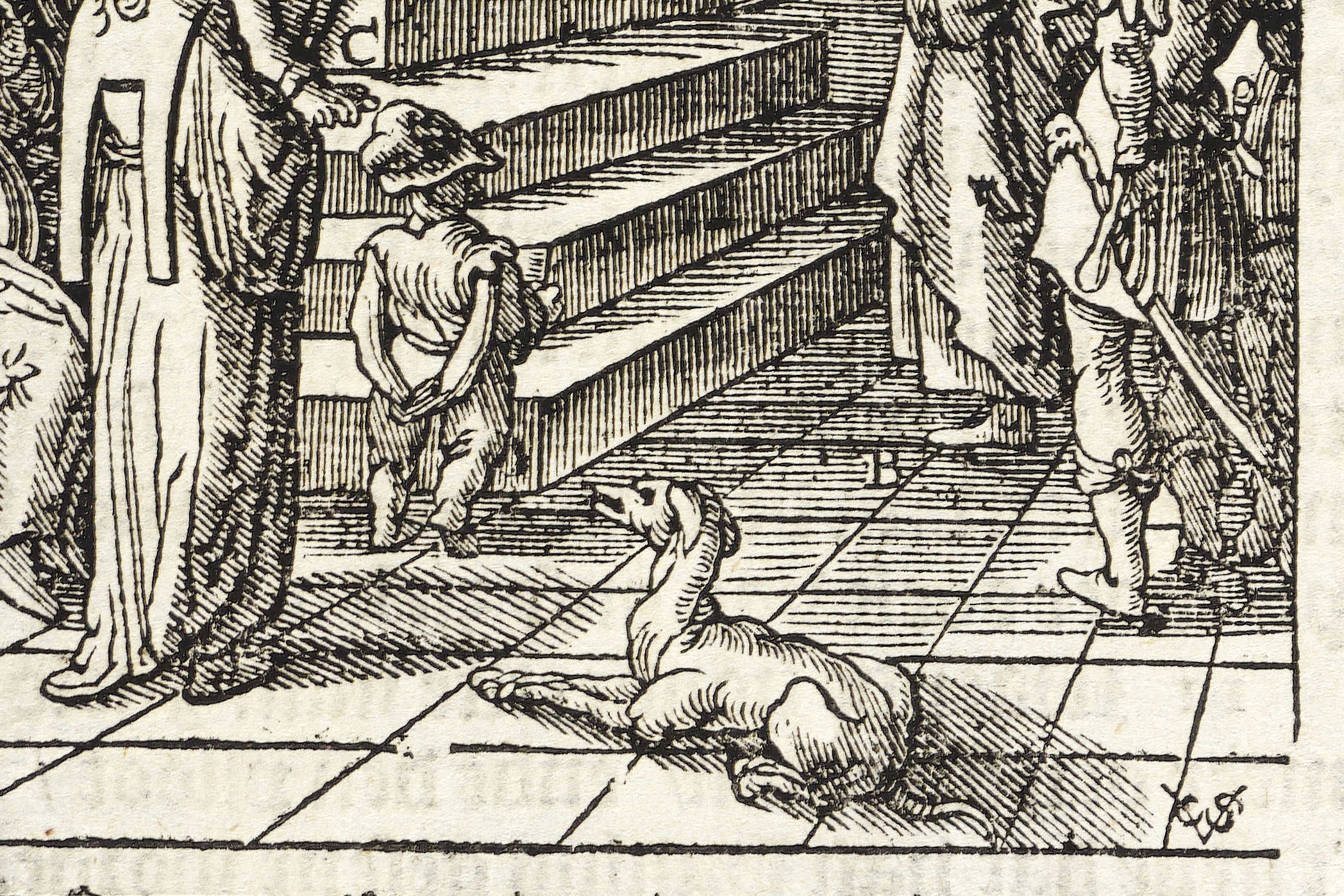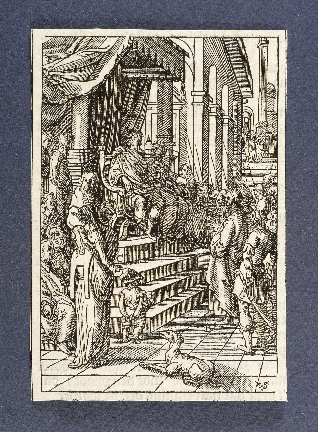 Aus: Het Nieuwe Testament ons Selichmaeckers Jesu Christi (Antwerpen: Cornelis Verschuren 1646). – Im Druckstock rechts unten signiert mit ligiertem Monogramm CVS. Verso altniederländischer typografischer Rückentext. Sammlerstempel EK im Kreis. – Mit schmalem Rändchen um die Darstellung. Verso leichte Montagespuren. Papier geringfügig gewellt. Insgesamt guter Zustand.