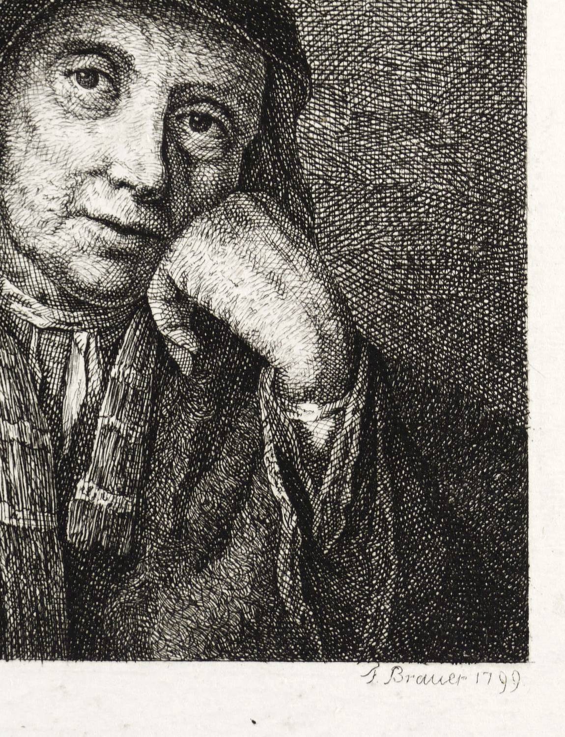 1799. Radierung / Strichätzung, in Schwarz, auf weißem Velin. – Originale Künstlergrafik, von F. Brauer. – 11,0 x 9,4 cm (Darstellung), 14,4 x 12,3 cm (Platte), 22 x 18 cm (Blatt).