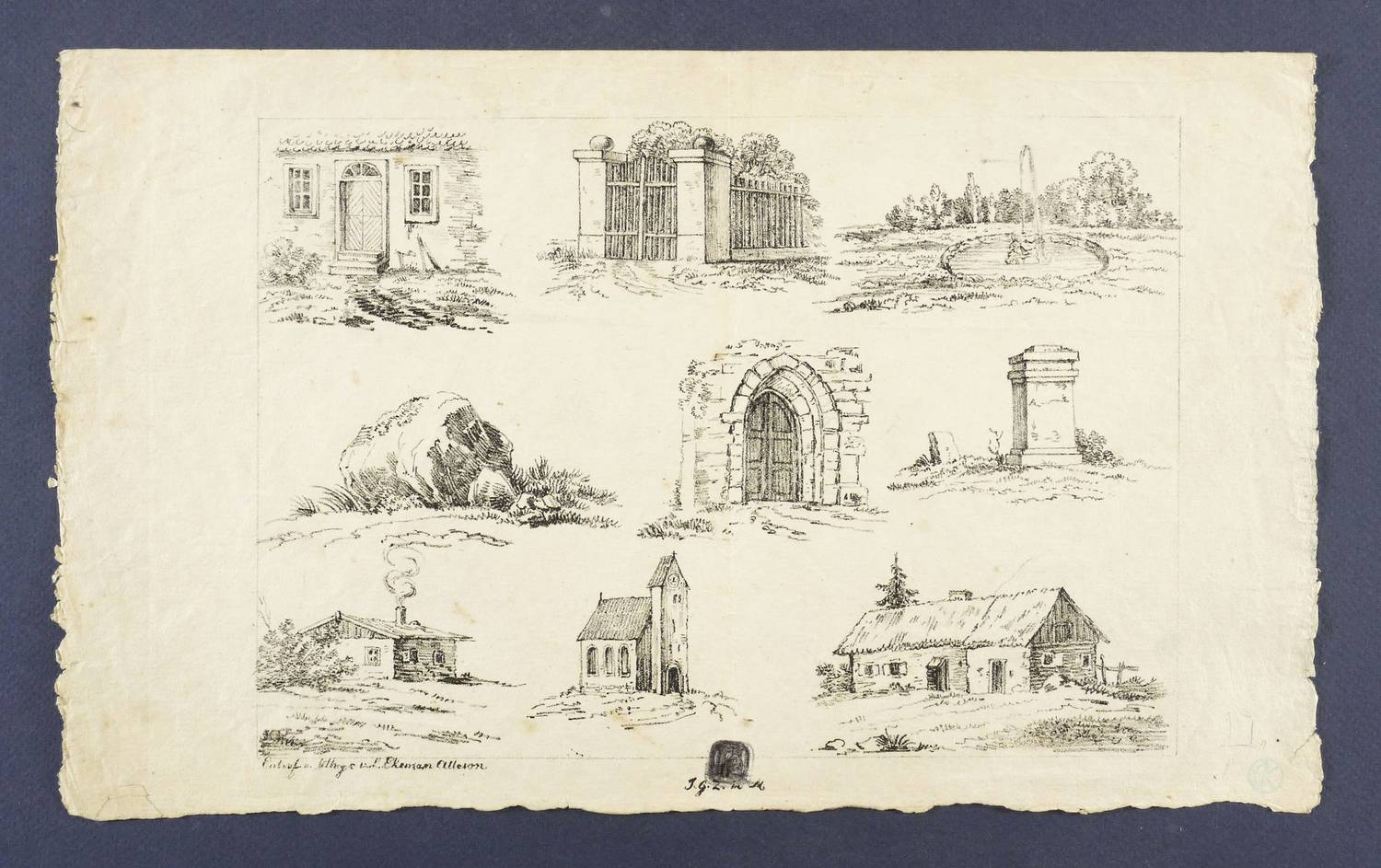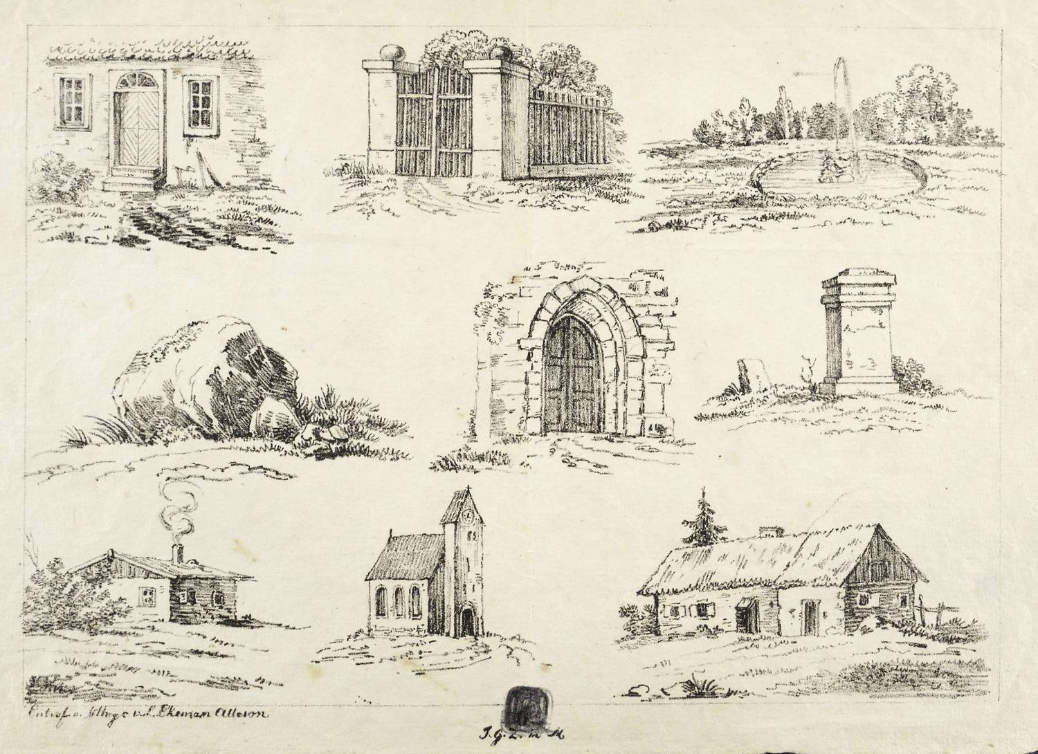1818-1820. Lithografie / Kreidelithografie, in Schwarz, auf gelblichem Büttenpapier. – Von Lorenz Ekeman-Allesson. – 18,4 x 26,5 cm (Darstellung / Einfassungslinie), 22 x 36 cm (Blatt).