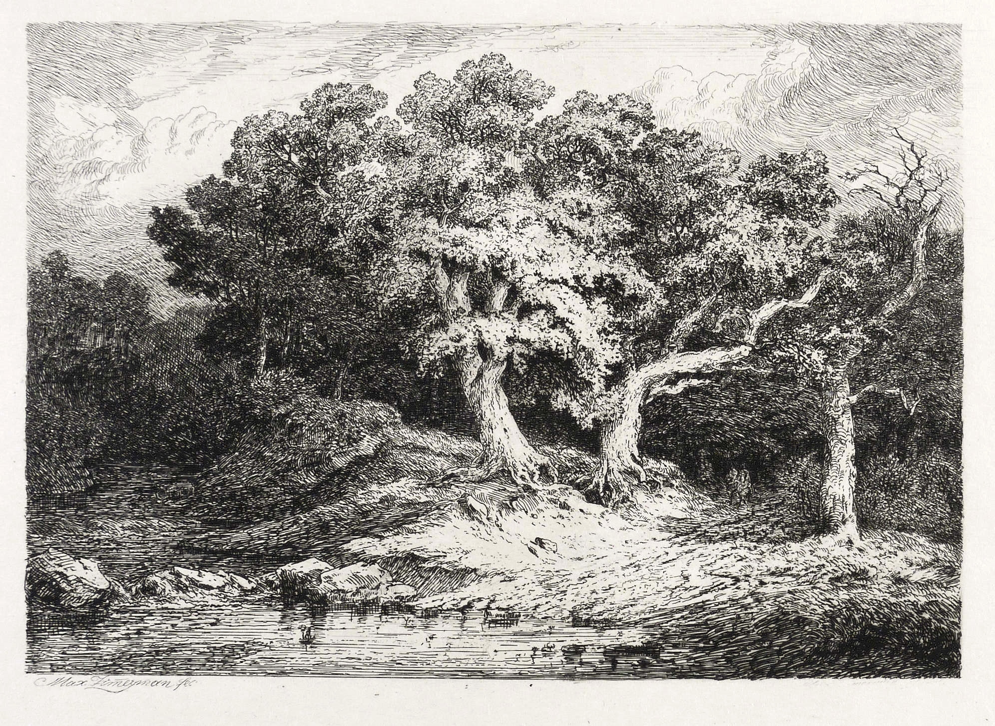 Zimmermann, Maximilian August. – „Waldlandschaft mit drei Eichen”.