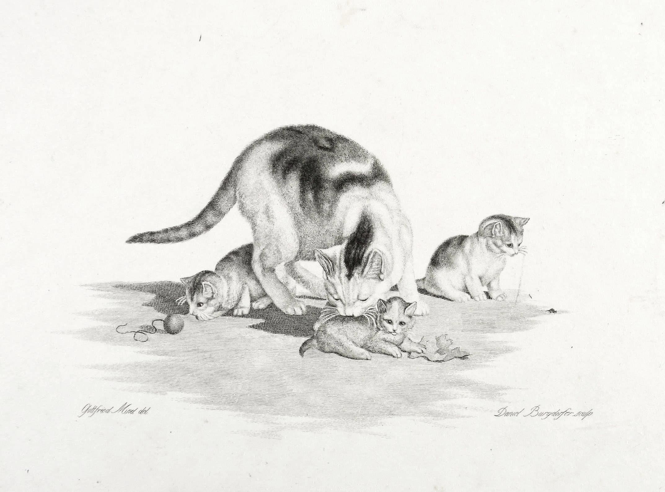 Mind, Gottfried (nach). – Daniel David Burgdorfer. – „Katze mit drei spielenden Jungen”.