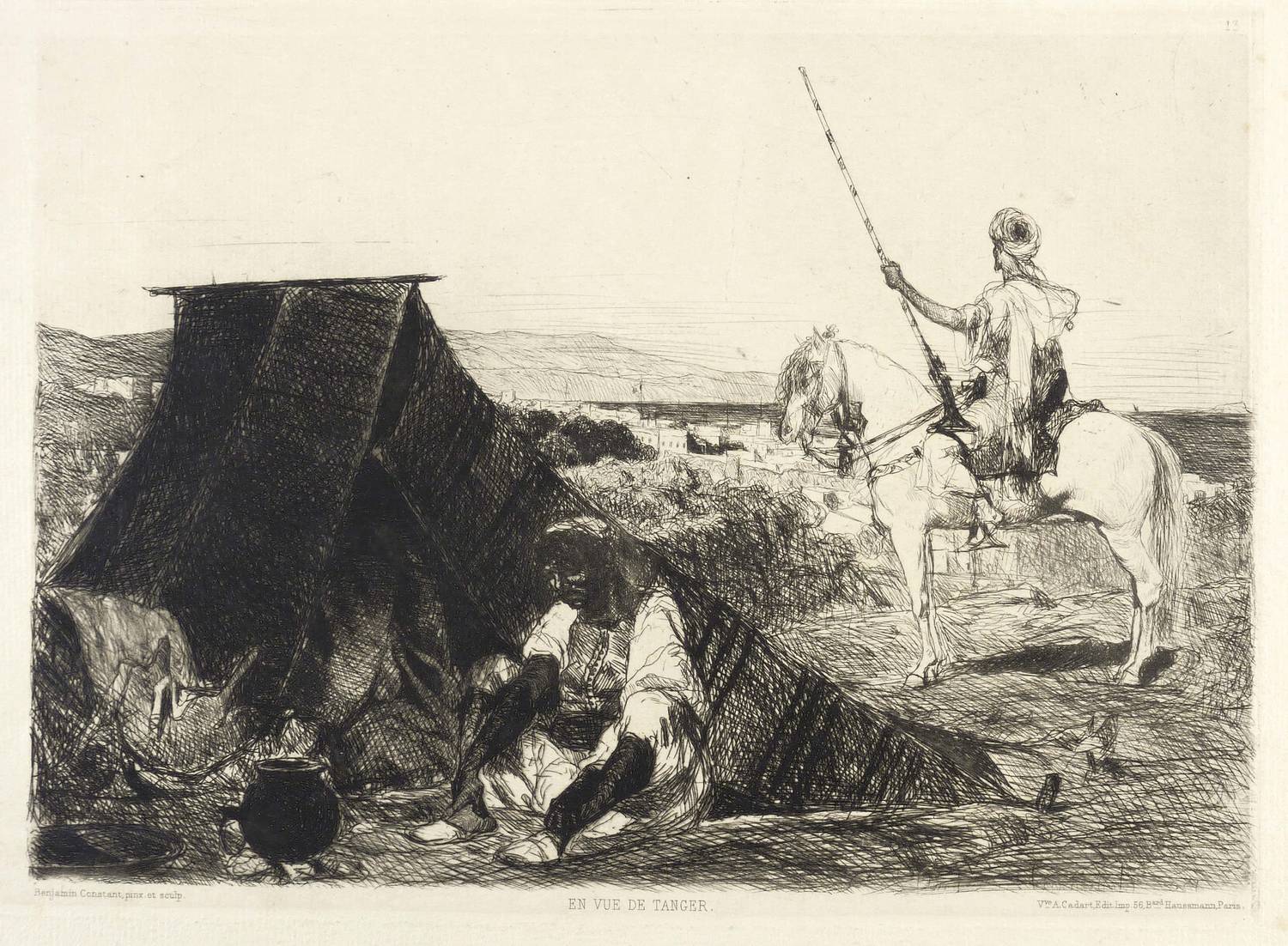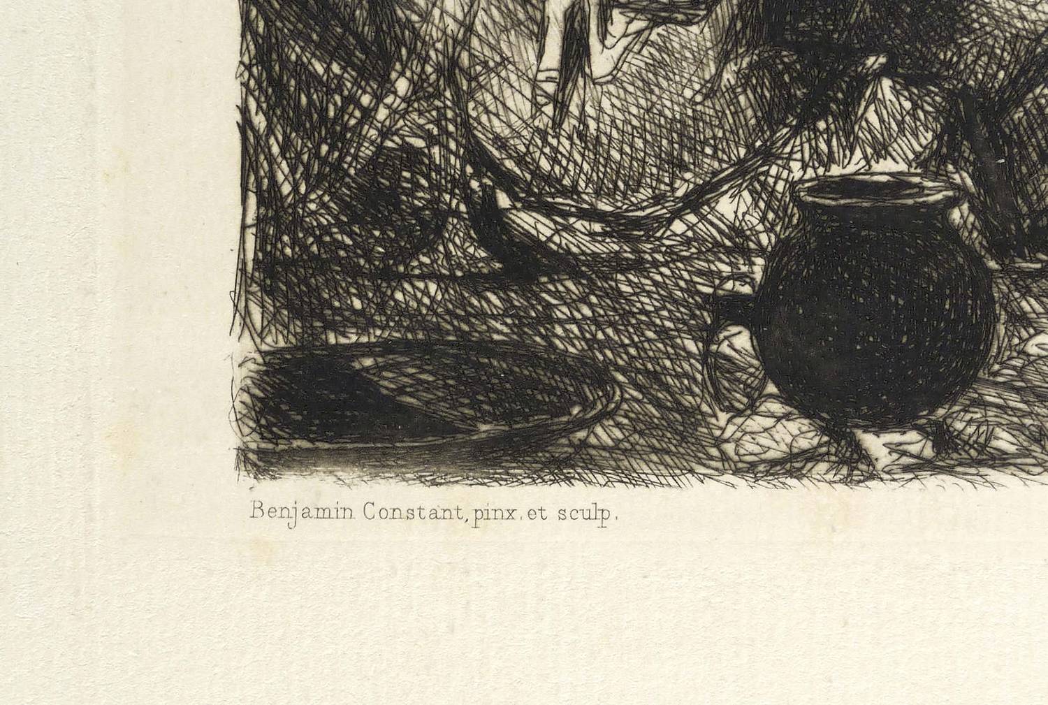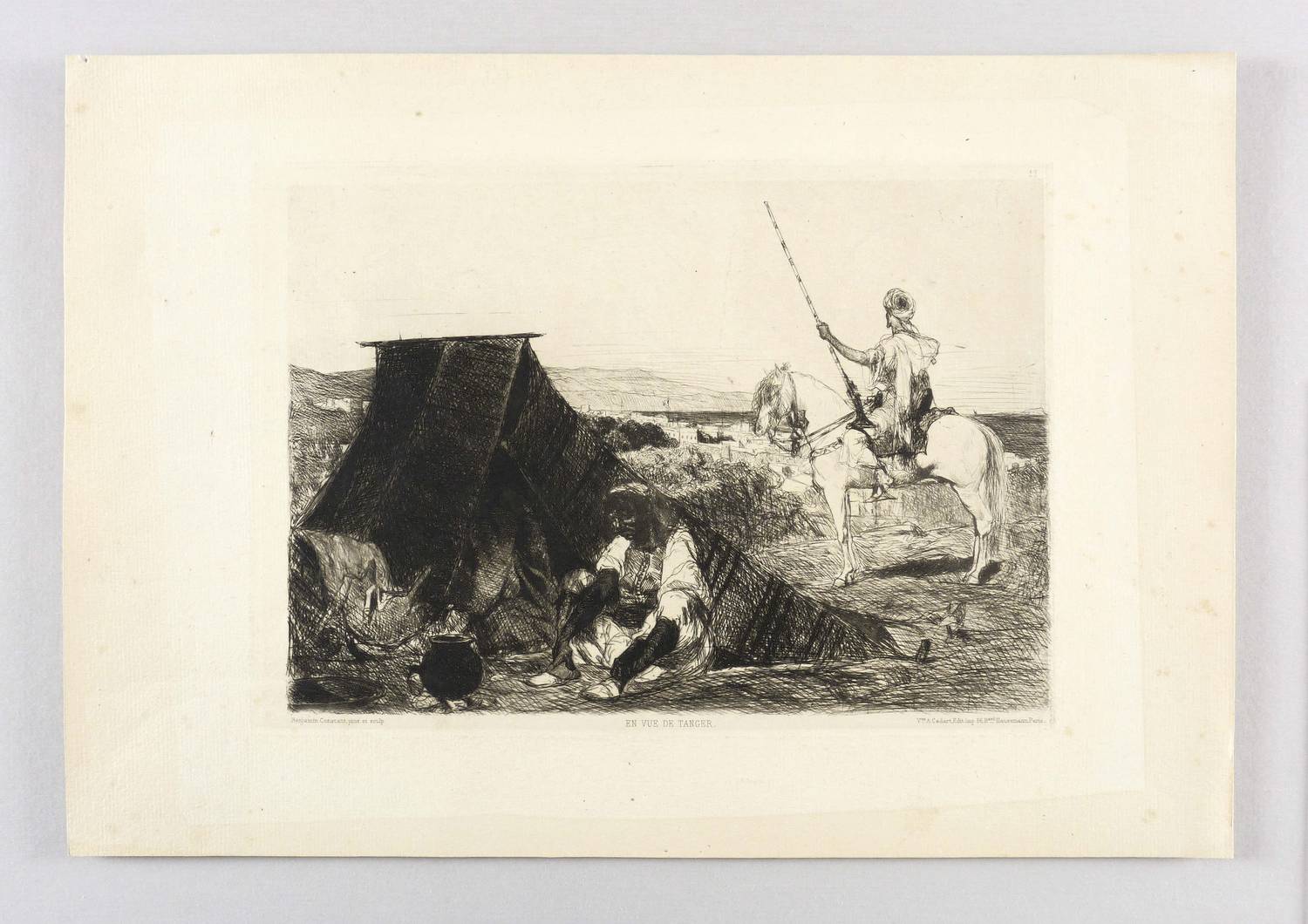 Links unten signiert: ″Benjamin Constant pinx. et sculp.″, mittig betitelt und rechts Verlegeradresse. Oben rechts nummeriert: ″13.″ Mit Wasserzeichen: ”D & OB LAUW”. – Blatt mit Lagerspuren, vereinzelten Stockflecken und Lichtrand. Verso mit Montageresten. Insgesamt etwas unfrischer Zustand.