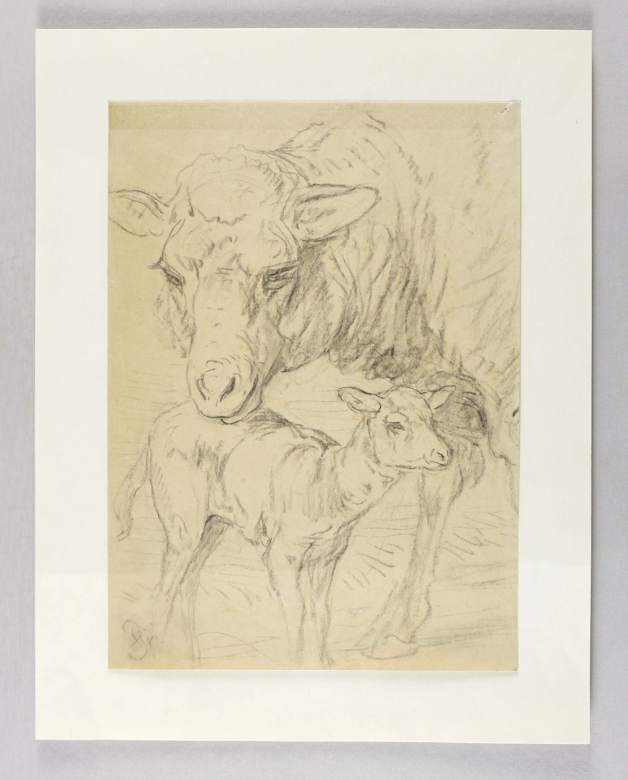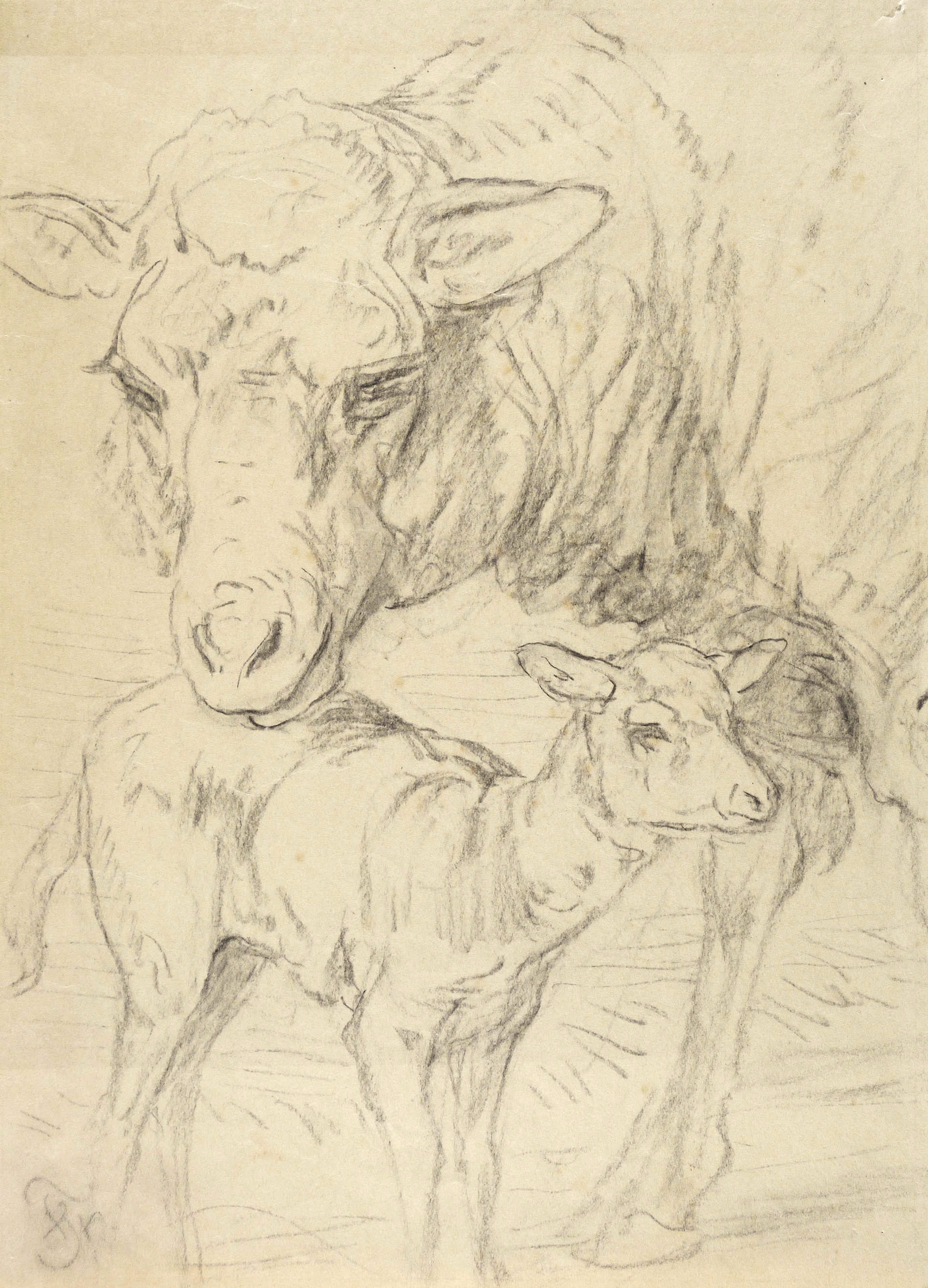 Um 1880. Zeichnung / Kohlezeichnung, in Braun, auf gelblichem Papier. – Historische Tierdarstellung, von Friedrich Specht. – Unikat. – 35 x 25,5 cm (Darstellung / Blatt), 43,5 x 34 cm (Trägerblatt).