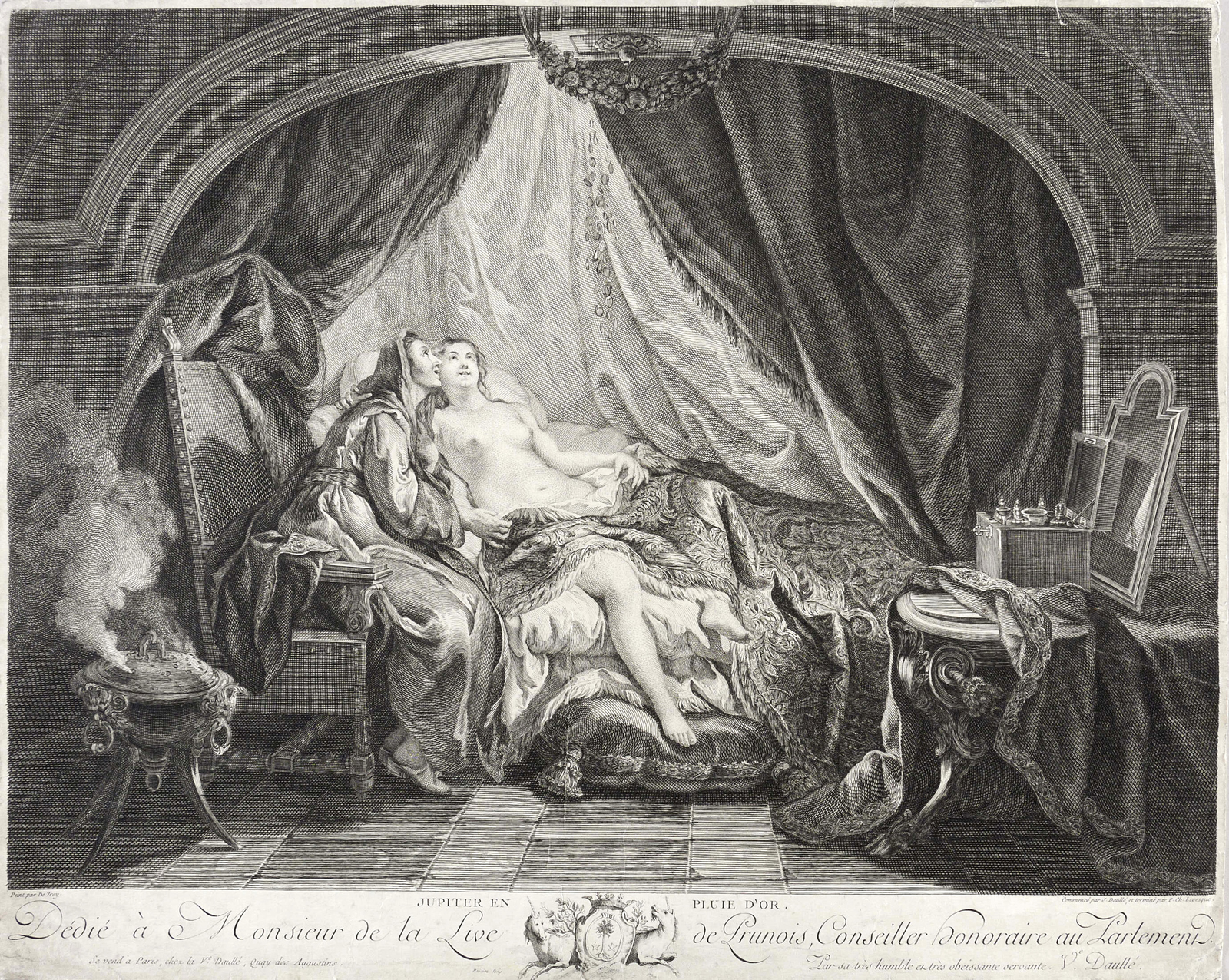 Daullé, Jean. – „Jupiter en pluie d'or (Danae)”.