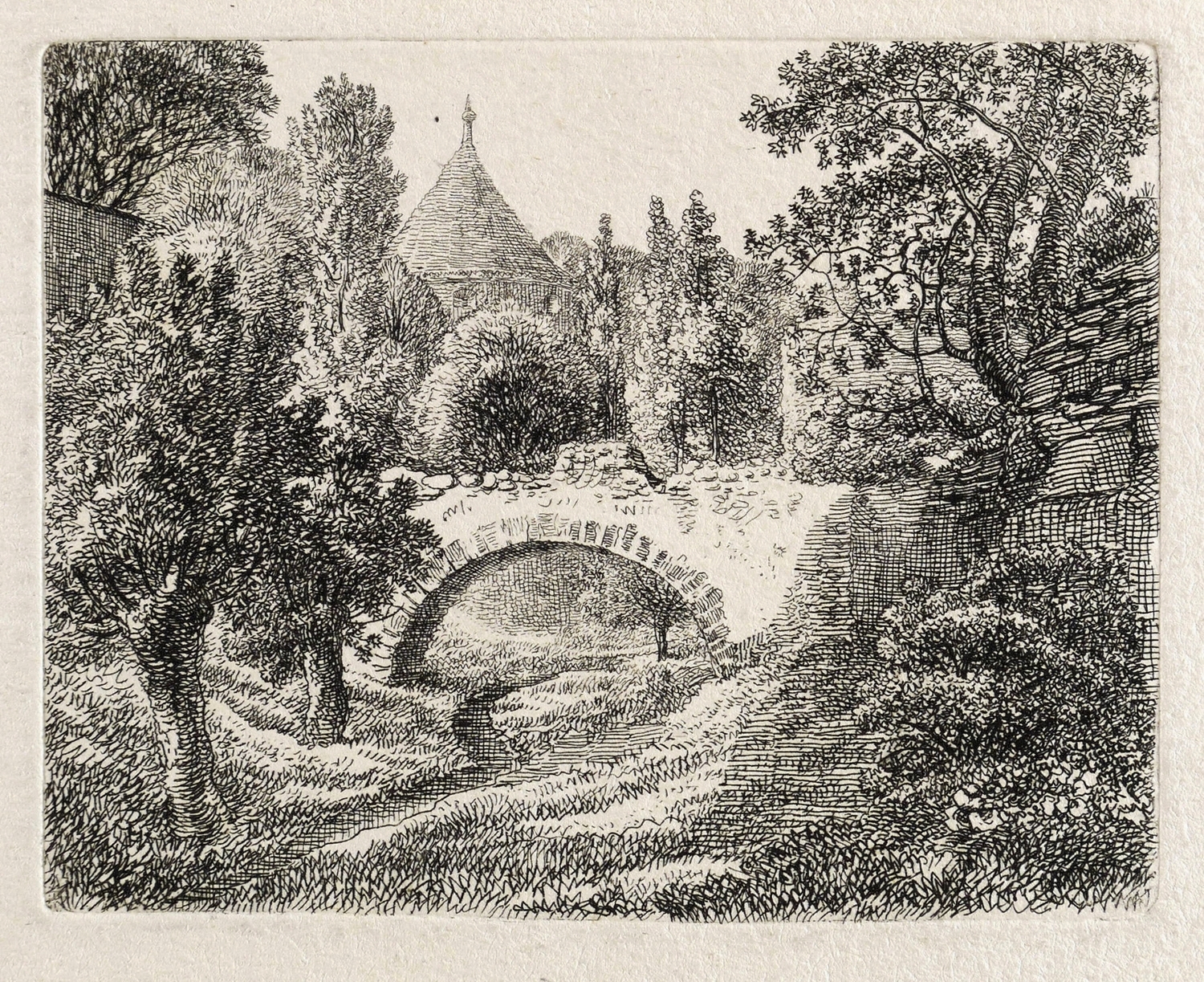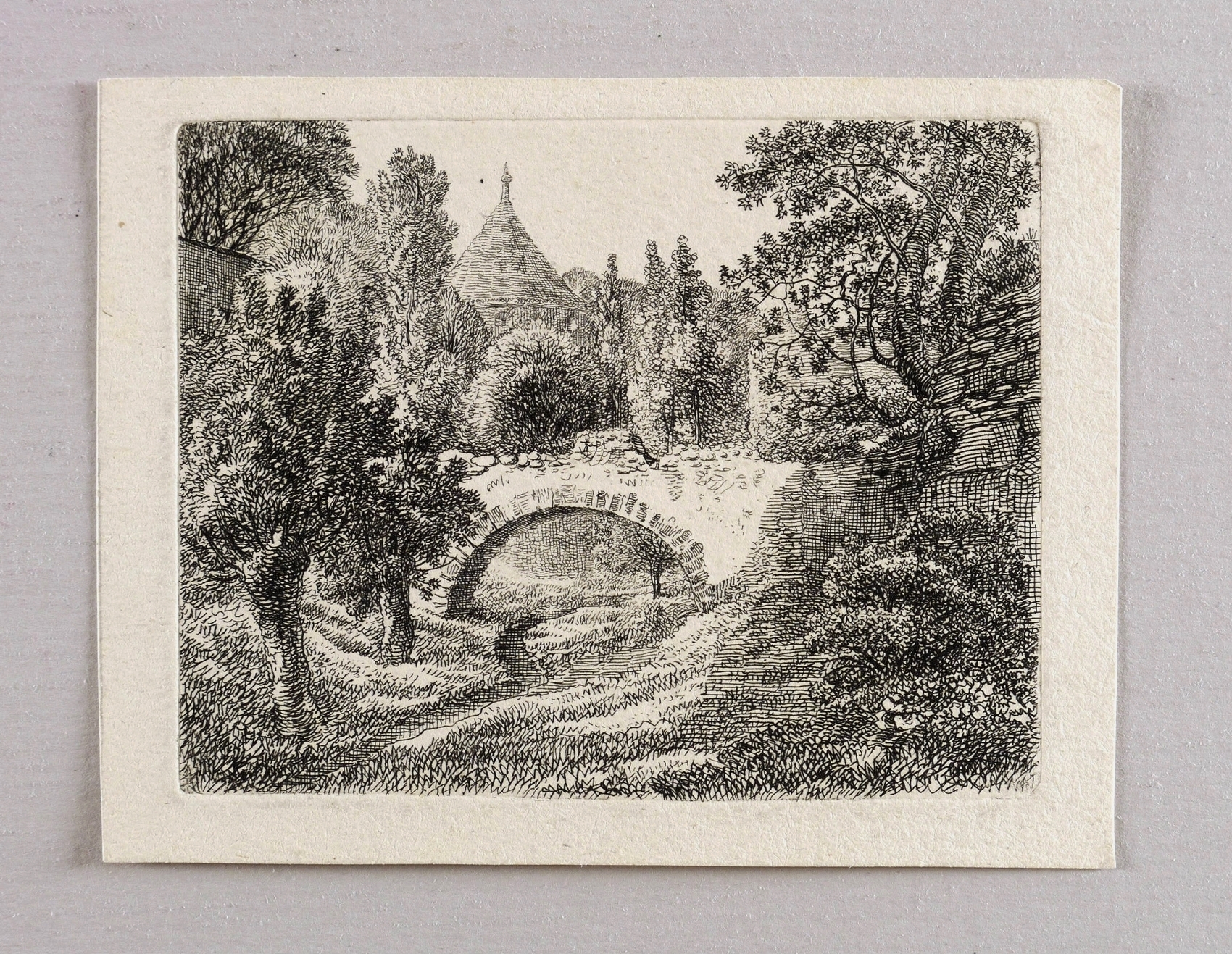Rümann 32. Fröhlich G 32. – Verso in Bleistift von diversen Händen bezeichnet und nummeriert: ″Schloßbrücke // 31 // Rüm. 32″. – Mit schmalem Rand um die Platte. Schön erhalten. Guter Zustand.