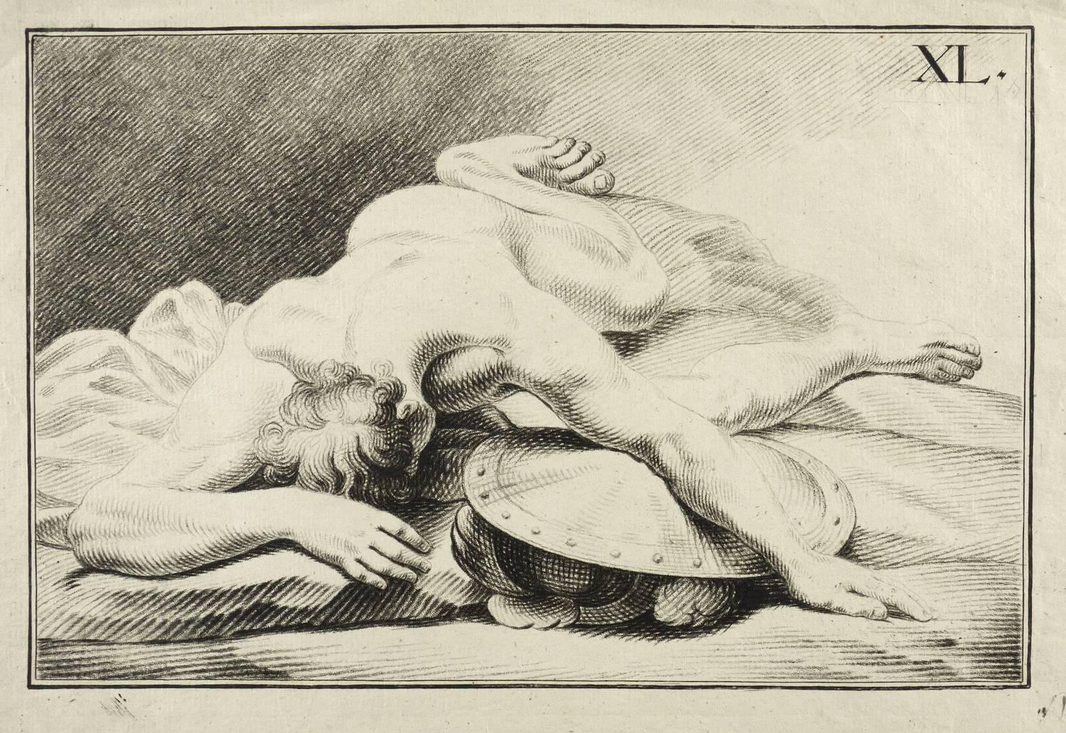 Deutscher Kupferstecher. – „Gefallener römischer Krieger”.