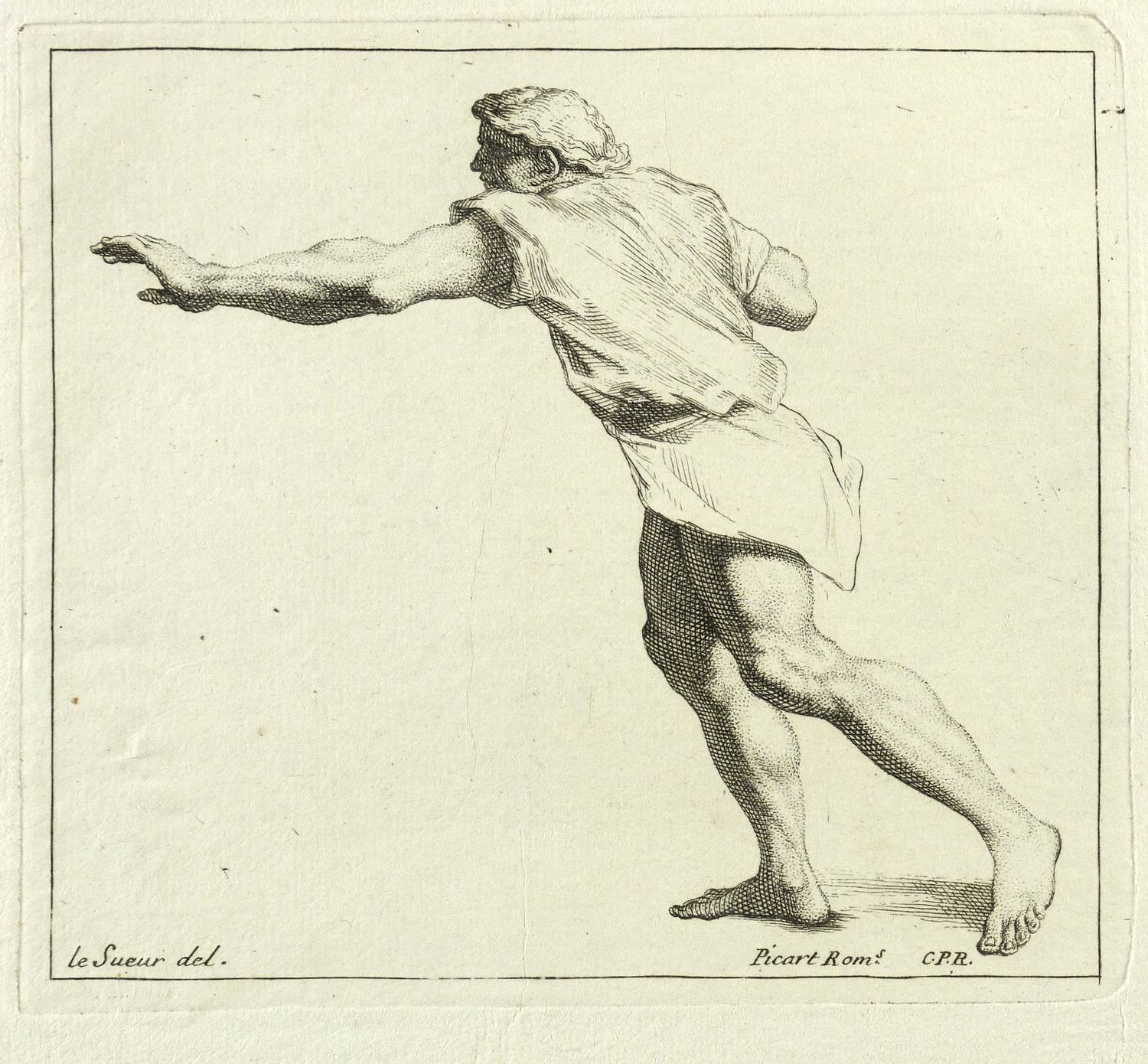 Etienne Picart (1632 Paris - 1721 Amsterdam). Genannt Le Romain. Französischer Kupferstecher. Schüler des François de Poilly dem Älteren. Mit dem befreundeten Guillaume Vallet verbrachte die Jahre 1655-61 in Rom. Dort stach er u. a. nach Guido Reni, Domenichino, Jacopo Tintoretto und Francesco Albani. Nach seiner Rückkehr wurde er 1664 an der Académie Royale zugelassen. 1711 siedelte er nach Amsterdam über.