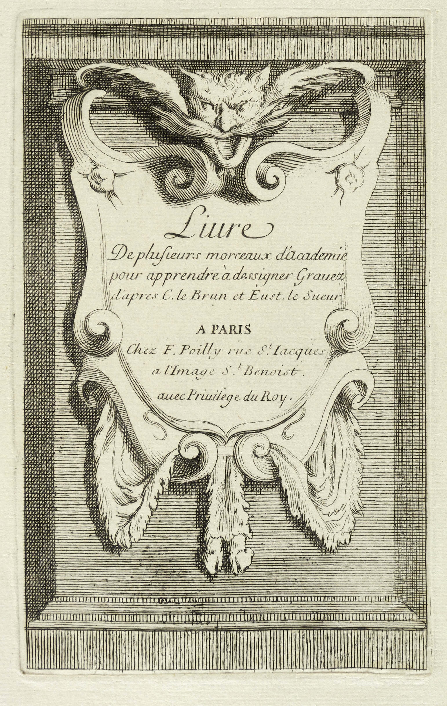 Aus: Charles Le Brun / Eustache Le Sueur, Livre De plusieurs morceaux d'academie pour apprendre a dessigner (chez Francois II Poilly 1690). – Innerhalb der Darstellung betitelt. Im unteren Rand handschriftlich bezeichnet und datiert. – Guter Zustand.