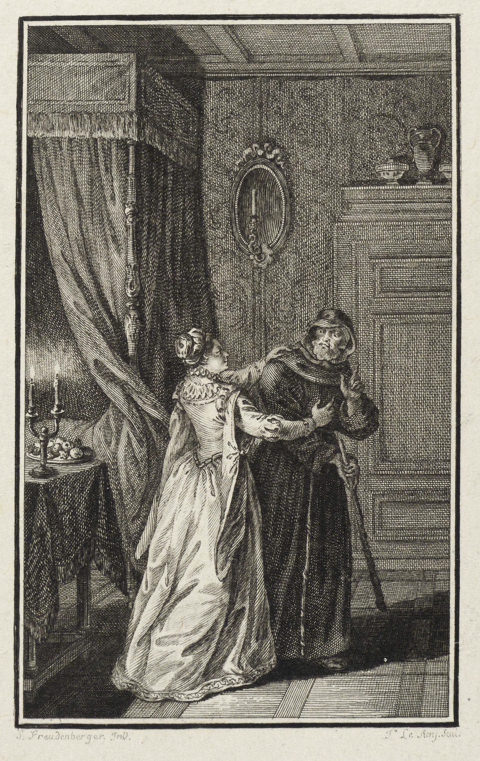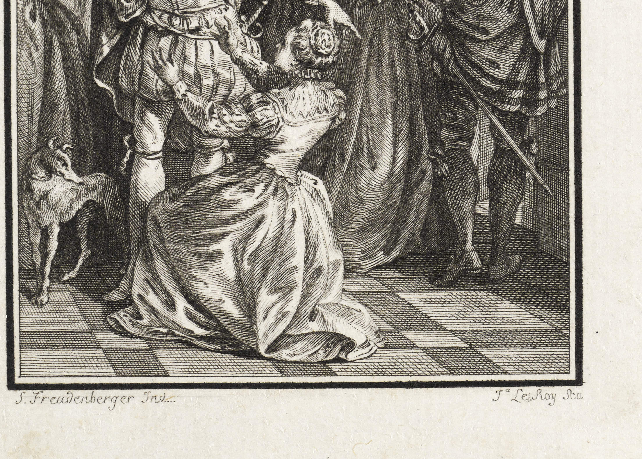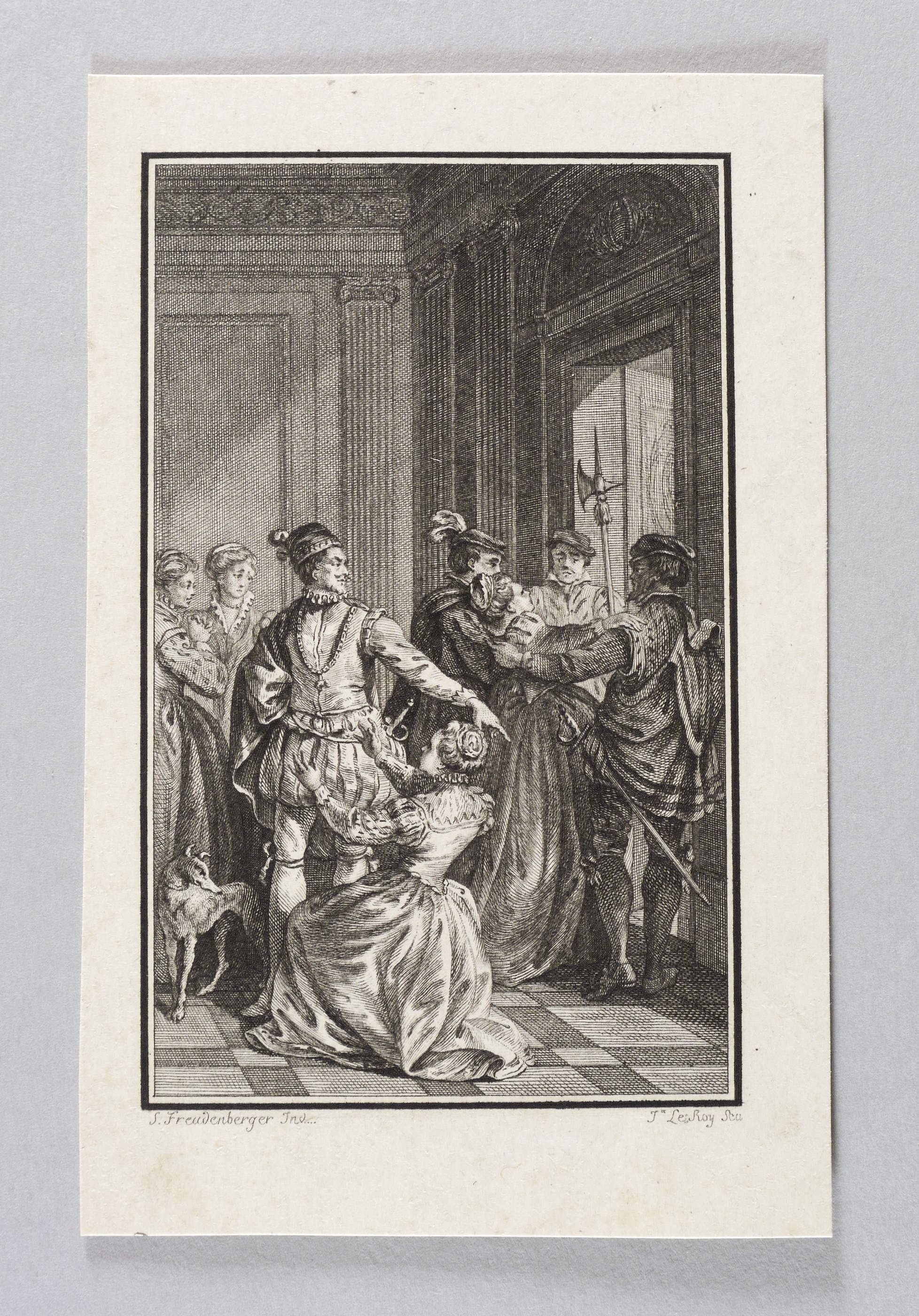 Aus: Margarete von Navarra, Les nouvelles. Heptaméron français (Bern: Walthard & Nouvelle Société Typographique 1780/1781), Bd. 1-3. – Rechts unten signiert: ″Ja Le Roy Scu″. – 8 Bll. der reich illustrierten Berner Ausgabe des ″Heptaméron″ von Margarete von Navarra. – Die einzelnen Blätter mit unterschiedlich breiten Rand um die Darstellung. Sonst guter Zustand.