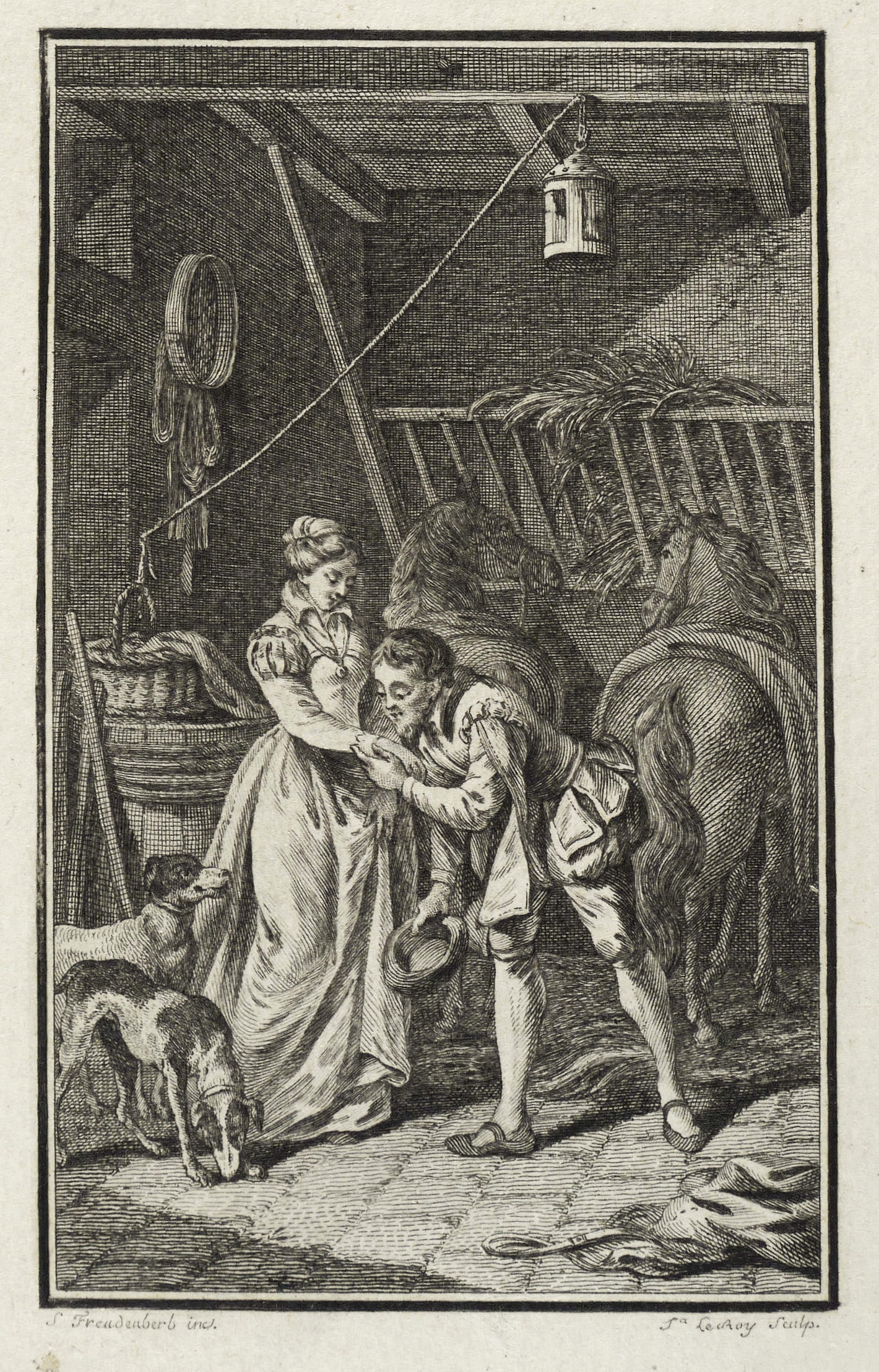 1780/1781. Radierung / Strichätzung, 8 Blätter, in Schwarz, auf Bütten. – Buchillustration, von Jacques Le Roy. – 10,4 x 6,5 cm (Darstellung / mit Schmuckrahmen), 18 x 12 cm (Blatt).