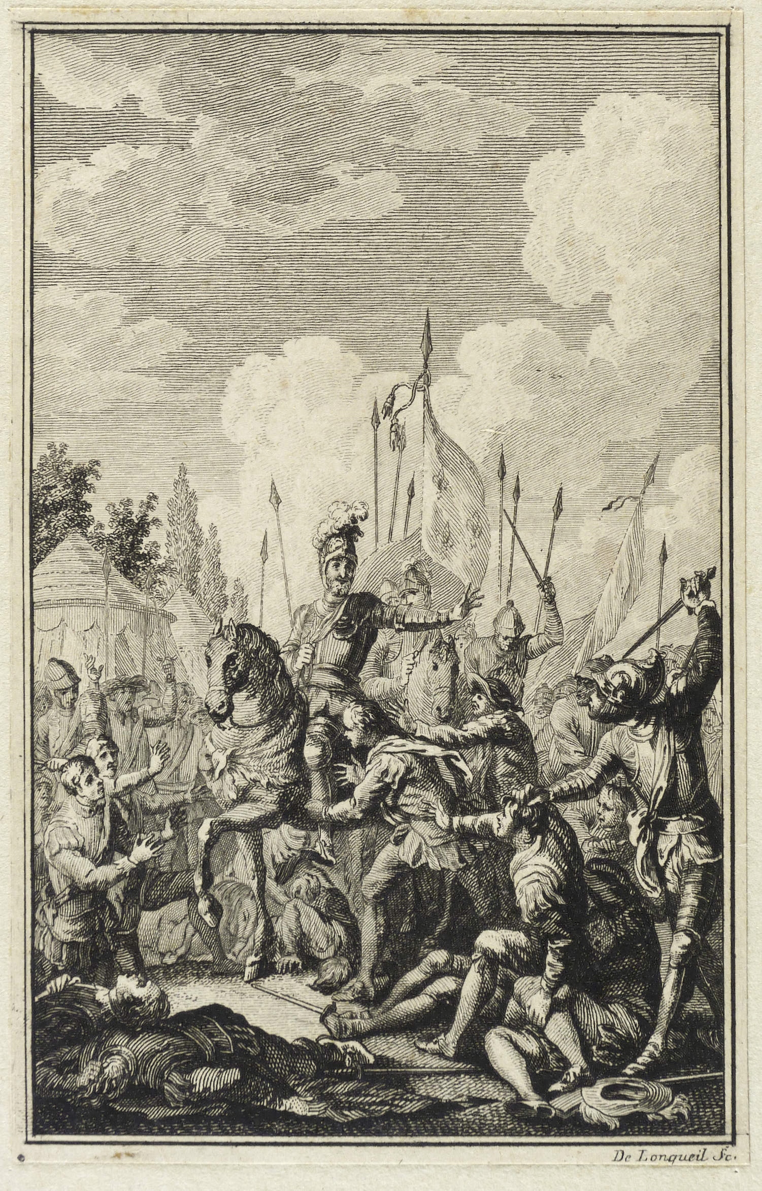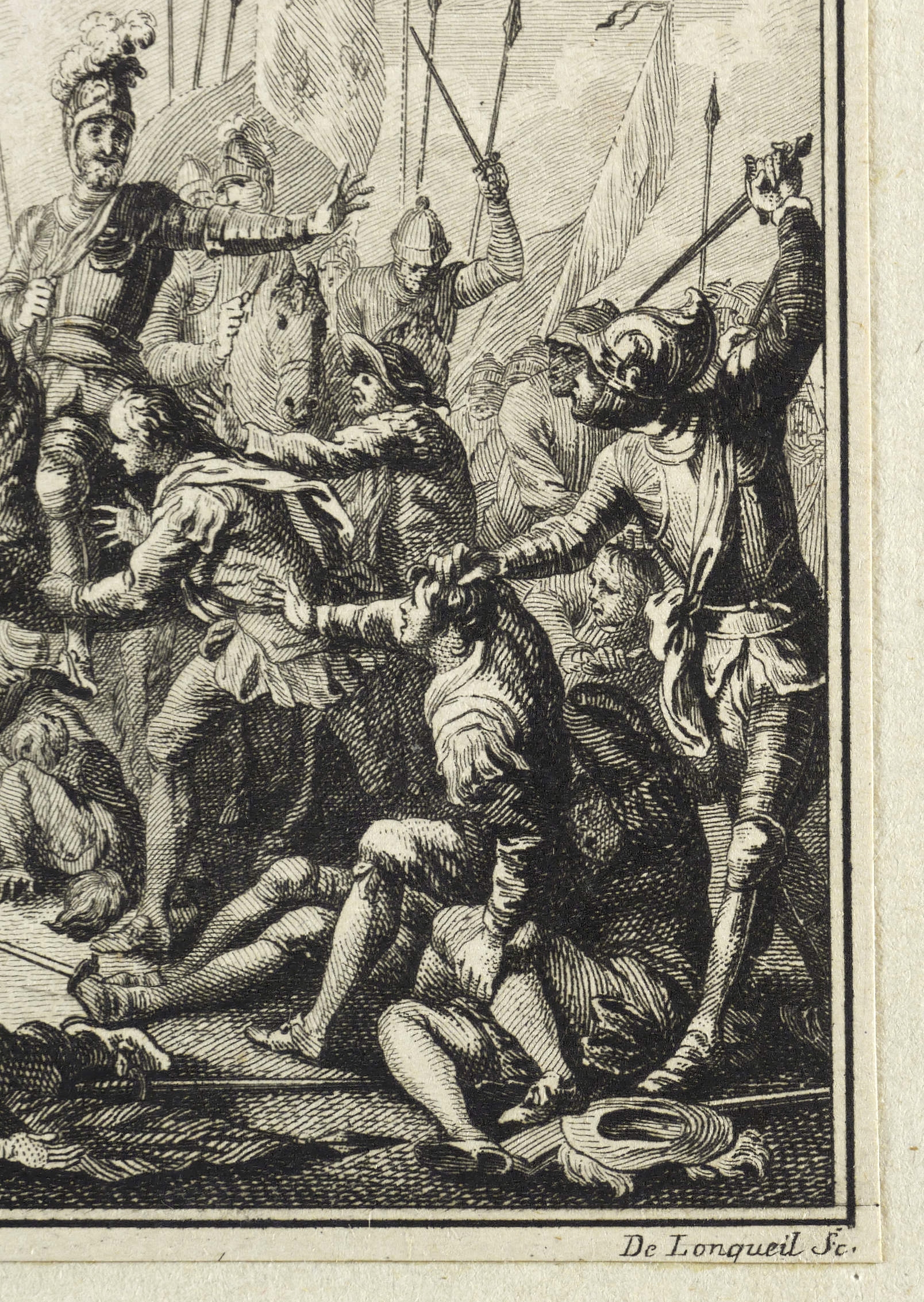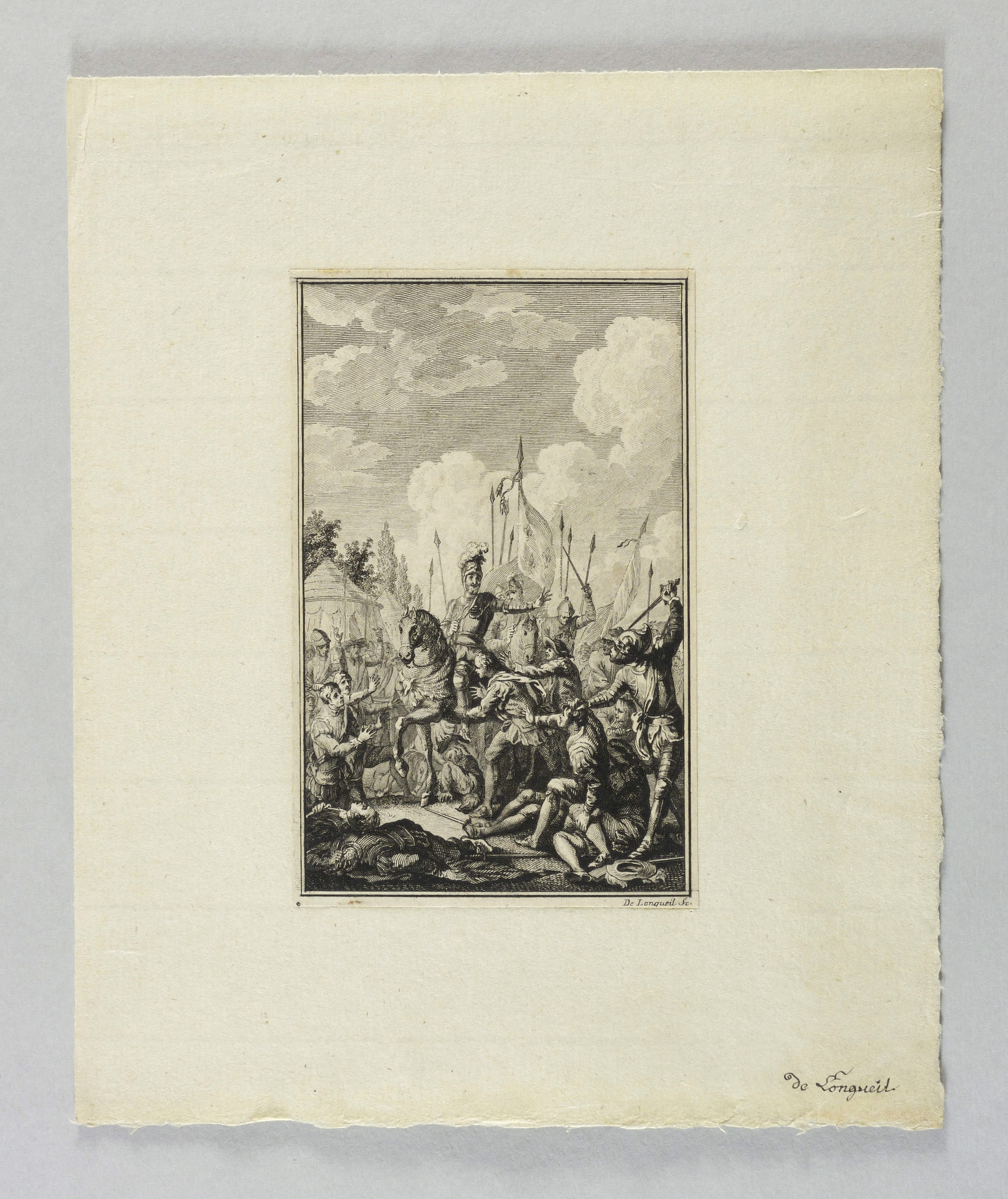 Joseph de Longueil (1730 Givet - 1792 Paris). Französischer Zeichner und Kupferstecher. Ging 1748 nach Paris, um bei Jacques Philippe Le Bas zu lernen. War auch in den Ateliers von Jacques Aliamet und Jean-Georges Wille tätig. Ab 1776 königlicher Hofkupferstecher, ab 1779 Graveurs des Fürsten von Condé. 1781 Heirat mit Mademoiselle Guerin, die schon 1790 starb.
