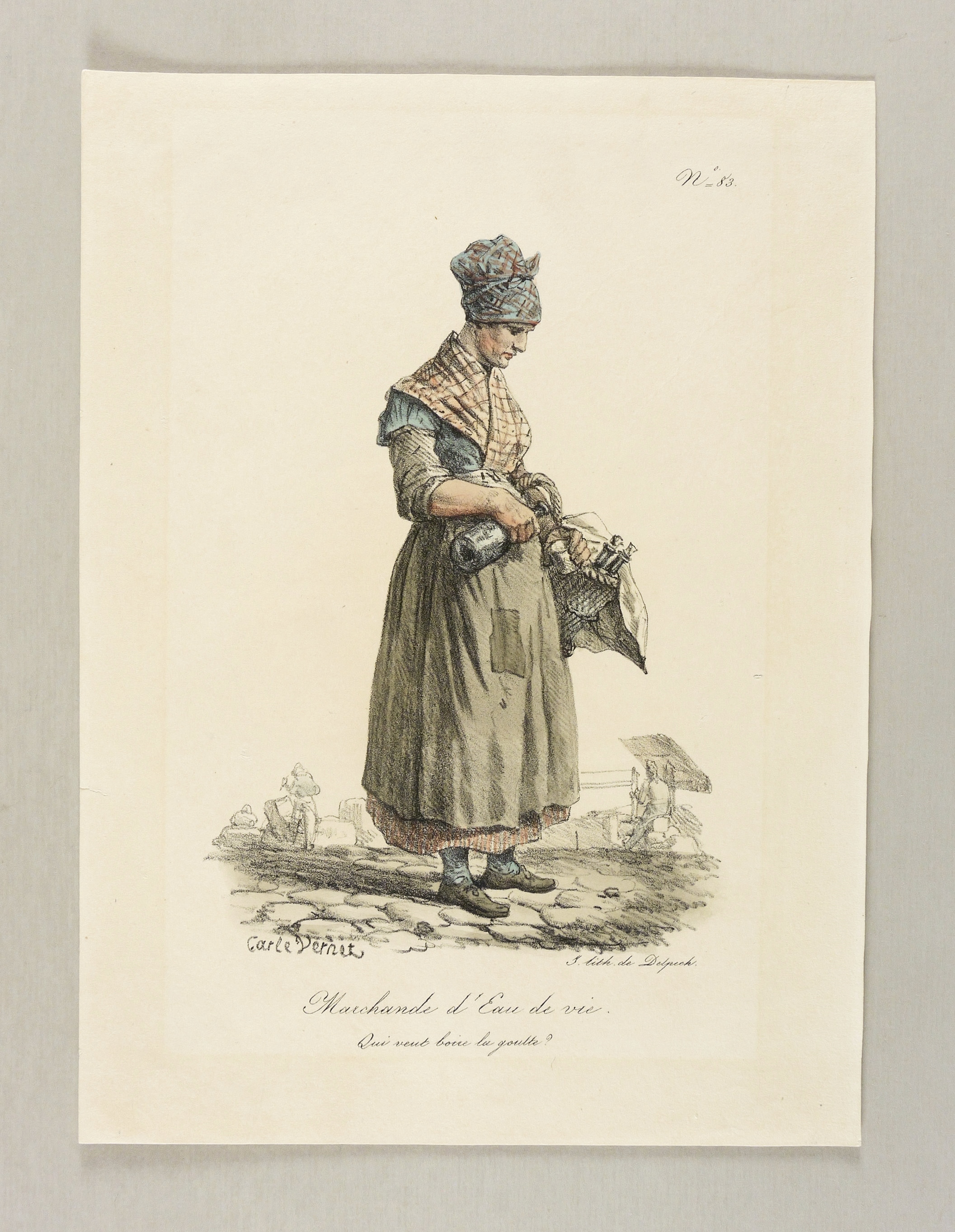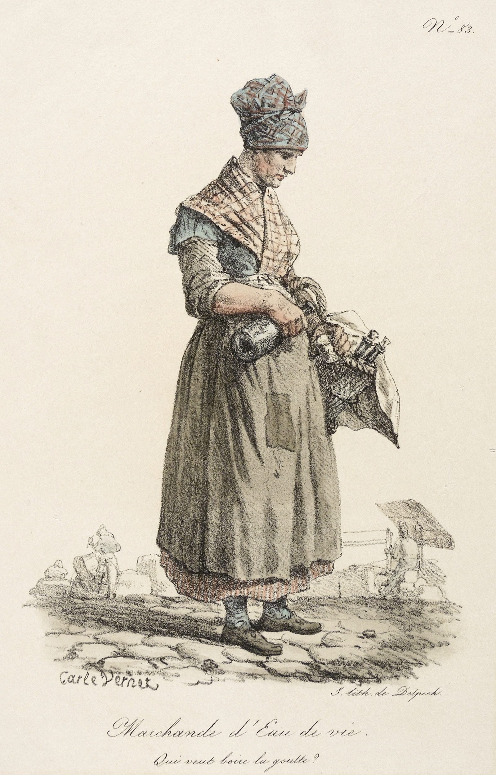 Delpech, François Séraphin. – Schnapshändlerin in Paris. – nach Vernet. – „Marchande d'Eau de vie. Qui veut boire la goulte?”.