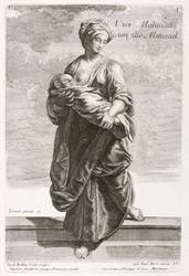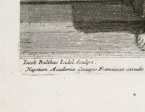 Links unten signiert: ″Iacob Balthas Lidel Sculps.″ Oben rechts in der Darstellung betitelt. Unten rechts Angabe des Verlegers: ″Ioh. Dan. Herz excud. A.V.″ – Blatt Nr.: 159 aus der Folge: ″Figuren aus Mahlereyen der Berühmtesten Italiänischen und Frantzösischen Virtuosen″ oder auch ″Figures tirées des tableaux de plus celebres Peintres d'Italie et de France.″ – Untere linke Ecke leicht knickspurig. Sonst aber guter Zustand.