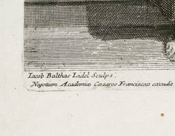 Um 1750. Kupferstich. – Von Jacob Balthasar Lidel. – 28,5 x 19,0 cm (Darstellung / Platte), 35,5 x 23 cm (Blatt).