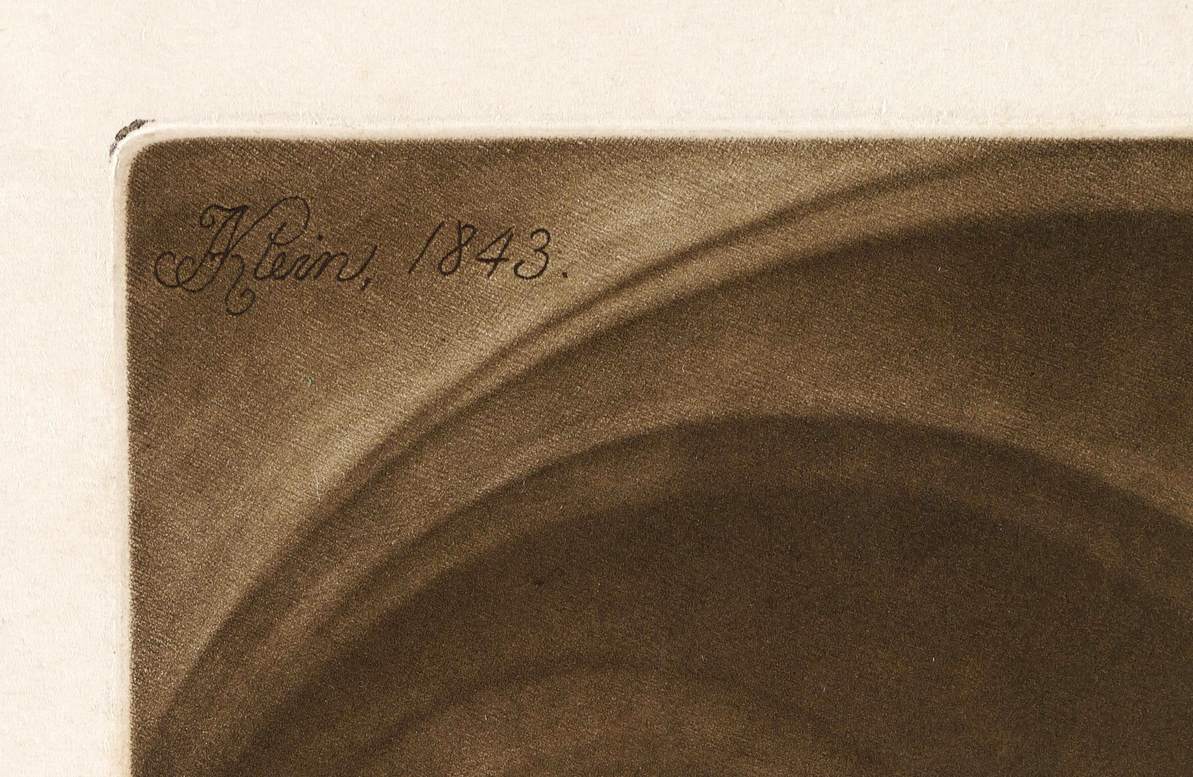 1843. Mezzotinto / Schabkunstblatt, in Dunkelbarun, auf hellgelbem Velin. – Originale Künstlergrafik, von Johann Adam Klein. – 18,1 x 22,5 cm (Darstellung / Platte), 22 x 26 cm (Blatt).