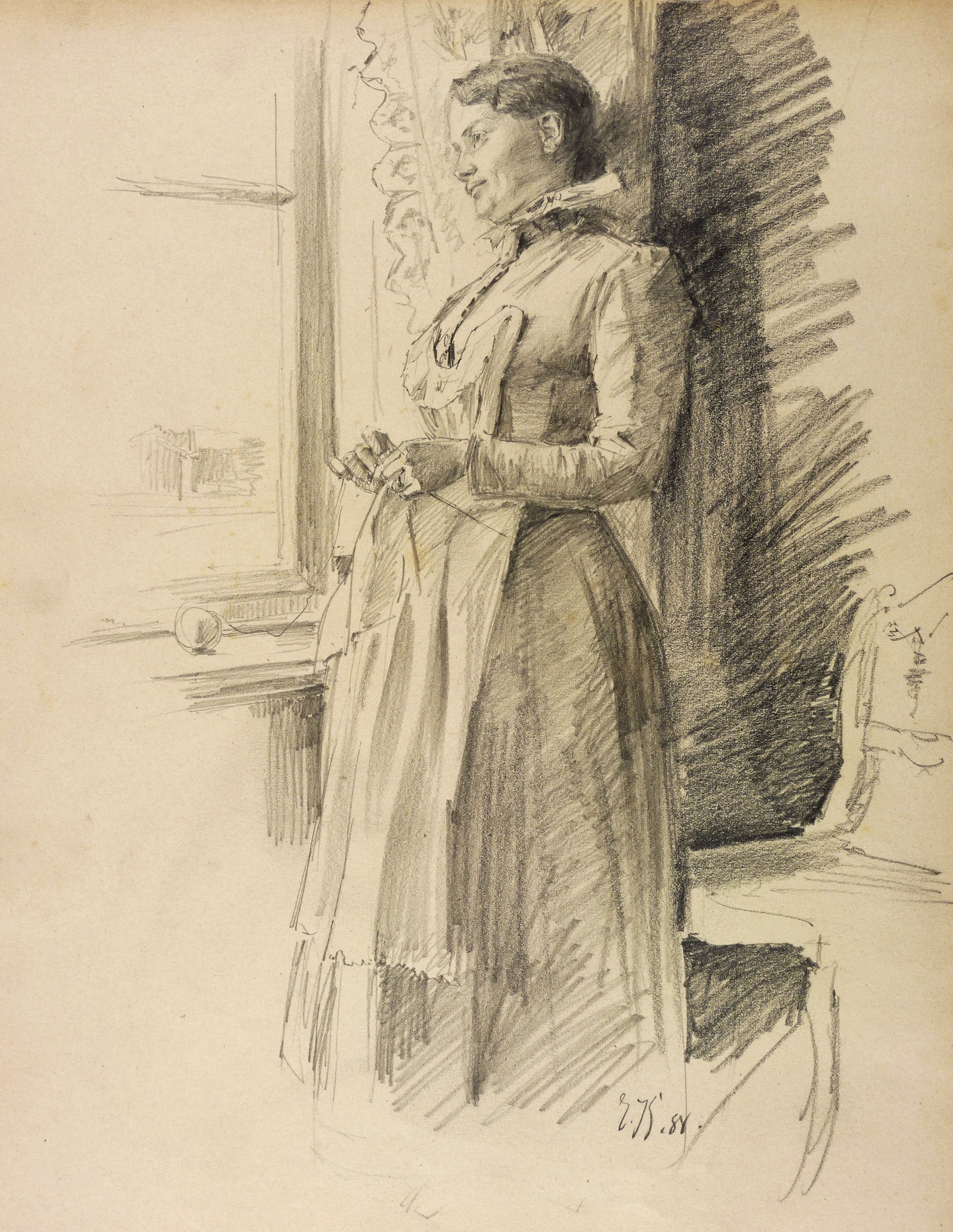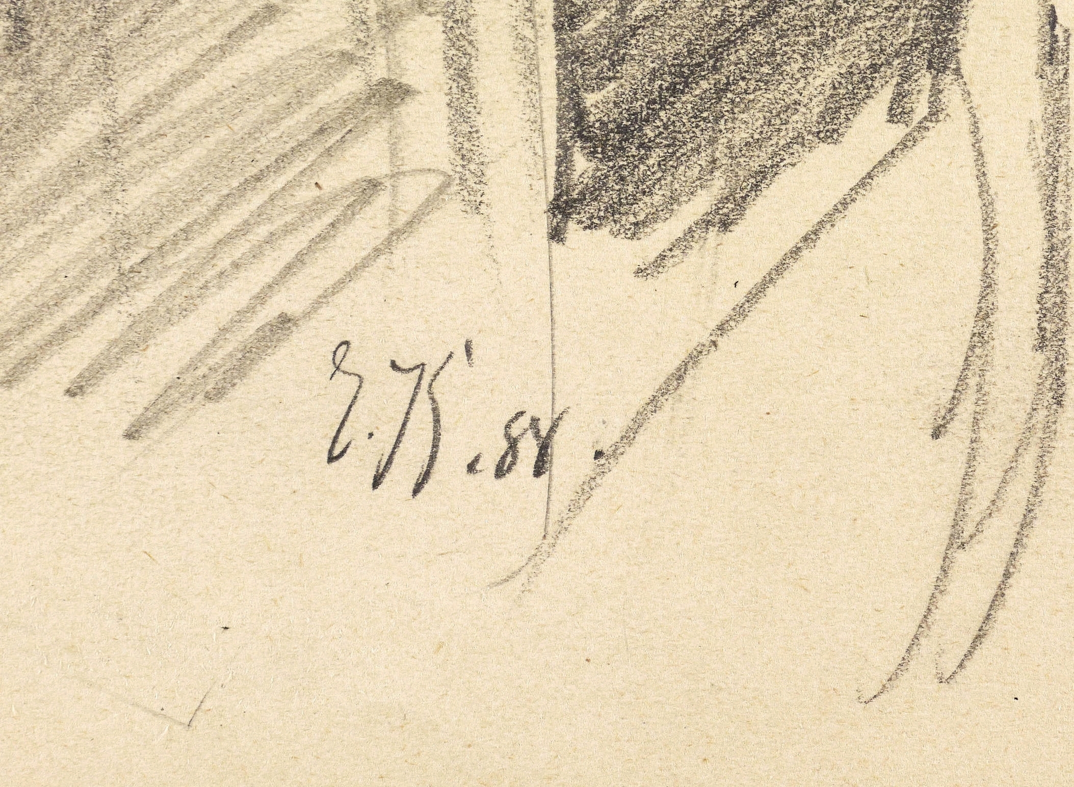 1888. Zeichnung / Bleistift, auf gelblichem Velin. – Originale Künstlergrafik, von Emil Keck. – Unikat. – 38,4 x 30,0 cm (Blatt).