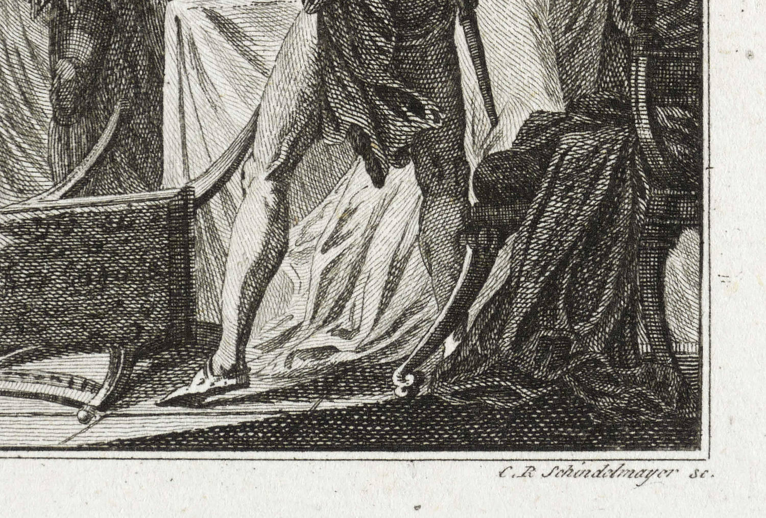 1801. Radierung / Strichätzung. – Von Carl Robert Schindelmayer. – 10,9 x 6,5 cm (Darstellung / Einfassungslinie), 14,7 x 8,9 cm (Platte), 19,5 x 14,5 cm (Blatt).