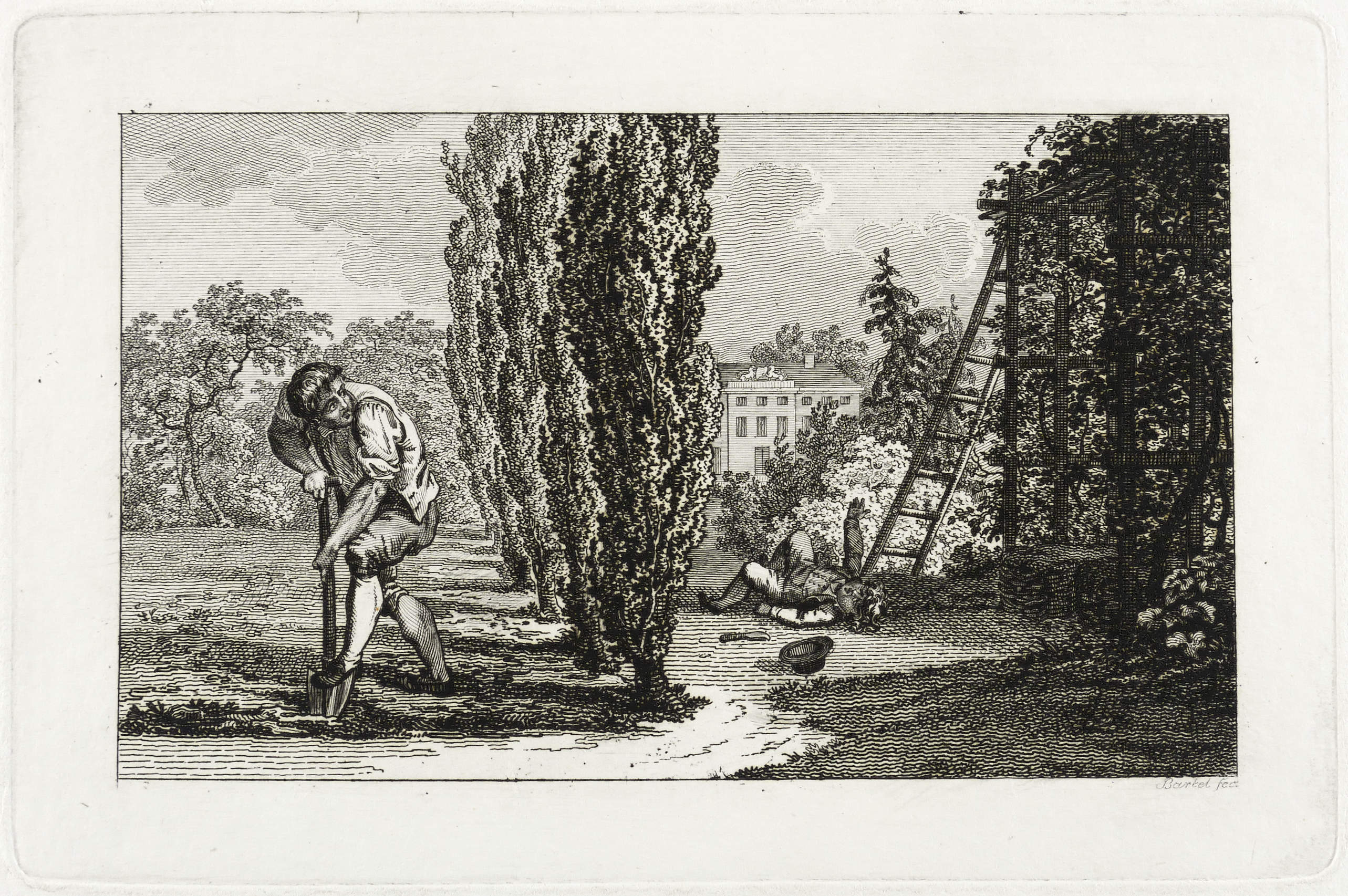 Barthel, Friedrich. – „Landschaftspark mit gestürztem Gärtner”.
