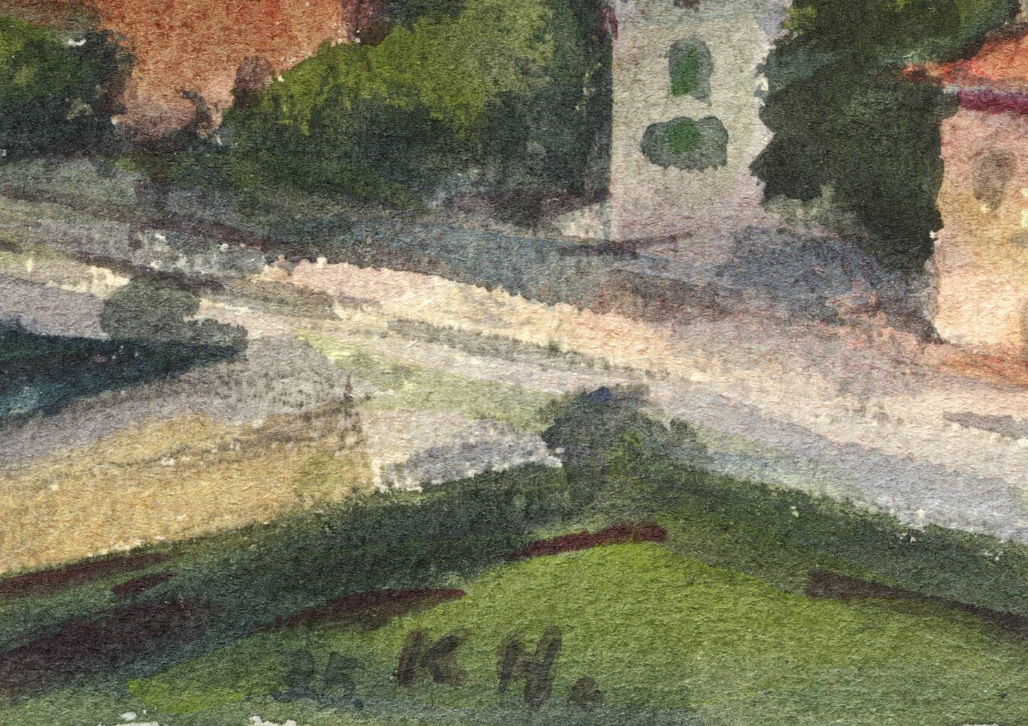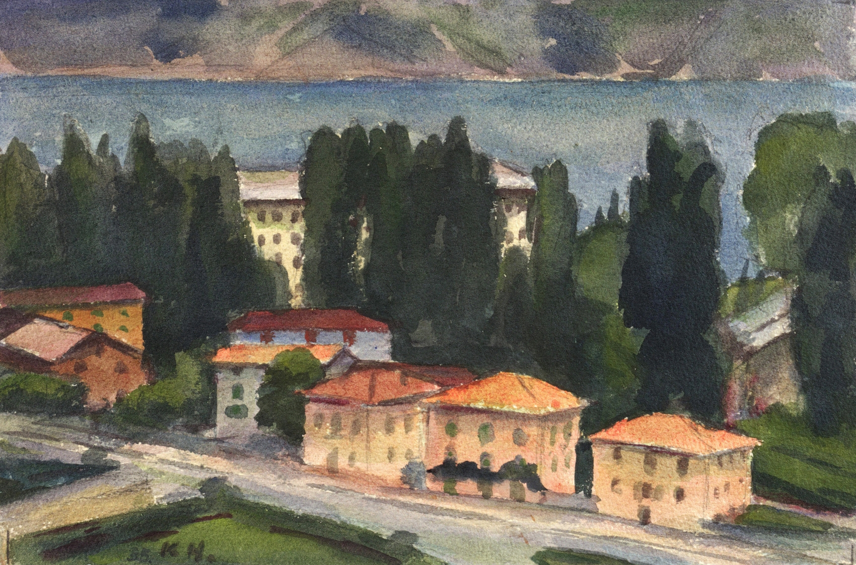 Links unten in Pinsel und Aquarellfarben signiert und datiert: ″35. K.H.″ Verso in Bleistift weiter bezeichnet und nochmals signiert: ″Torbole, August 1935. KHensel.″ – Rückseitig in den Ecken Reste einer ehemaligen Montierung. Insgesamt gut erhalten.