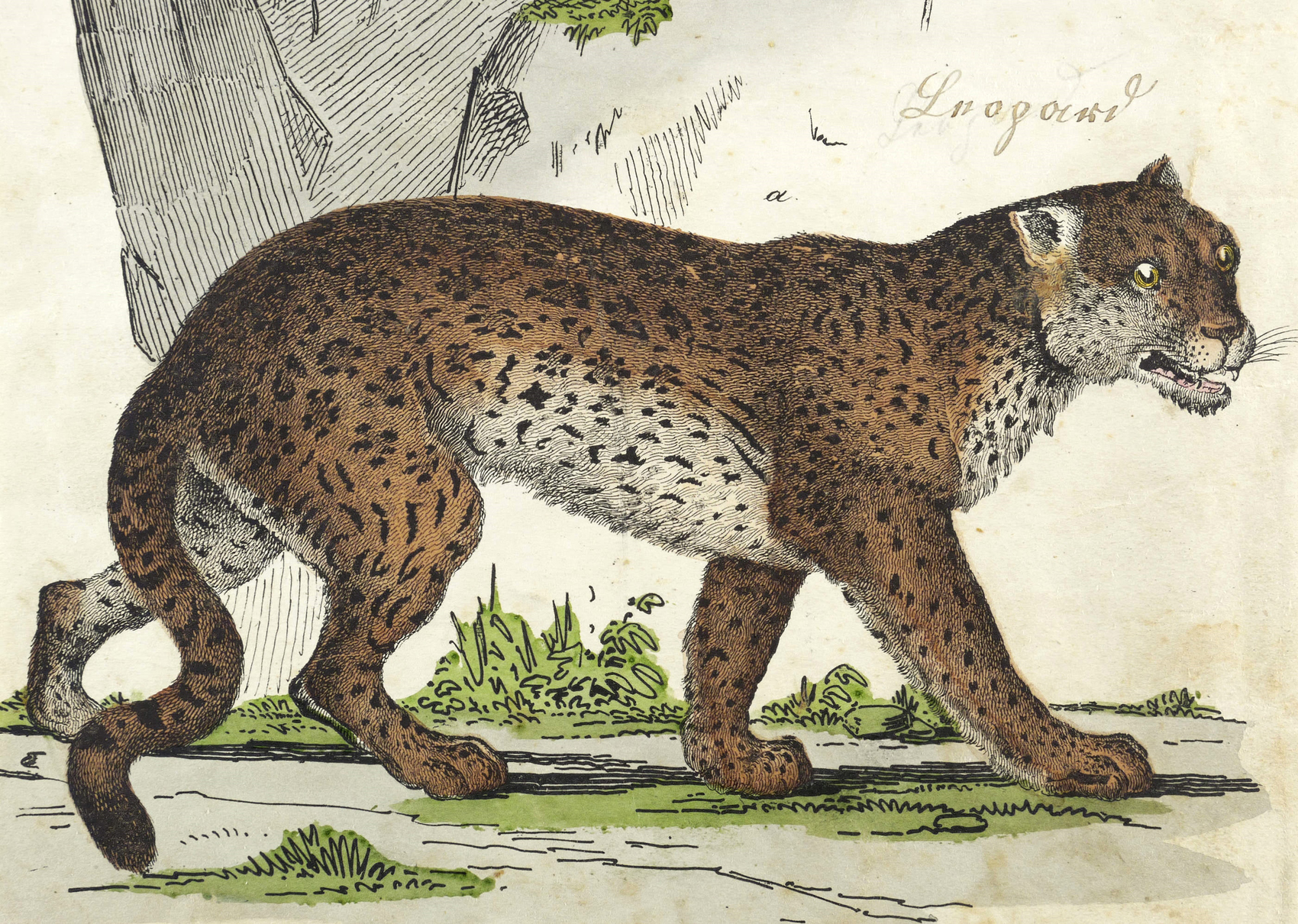 Aus: Naturgeschichte der Säugethiere in Bildern. treu theils nach d. Natur, theils nach d. ausgezeichn. zoolog. Bildersammlungen gez., fein u. getreu color. zum Anschauungsunterricht für d. Jugend [...] (Eßlingen & Stuttgart: Schreiber & Schill 1854). – Oben rechts in brauner Tusche betitelt. – Papier leicht fleckig und angeschmutzt. Stark beschnitten. Noch gut erhalten.