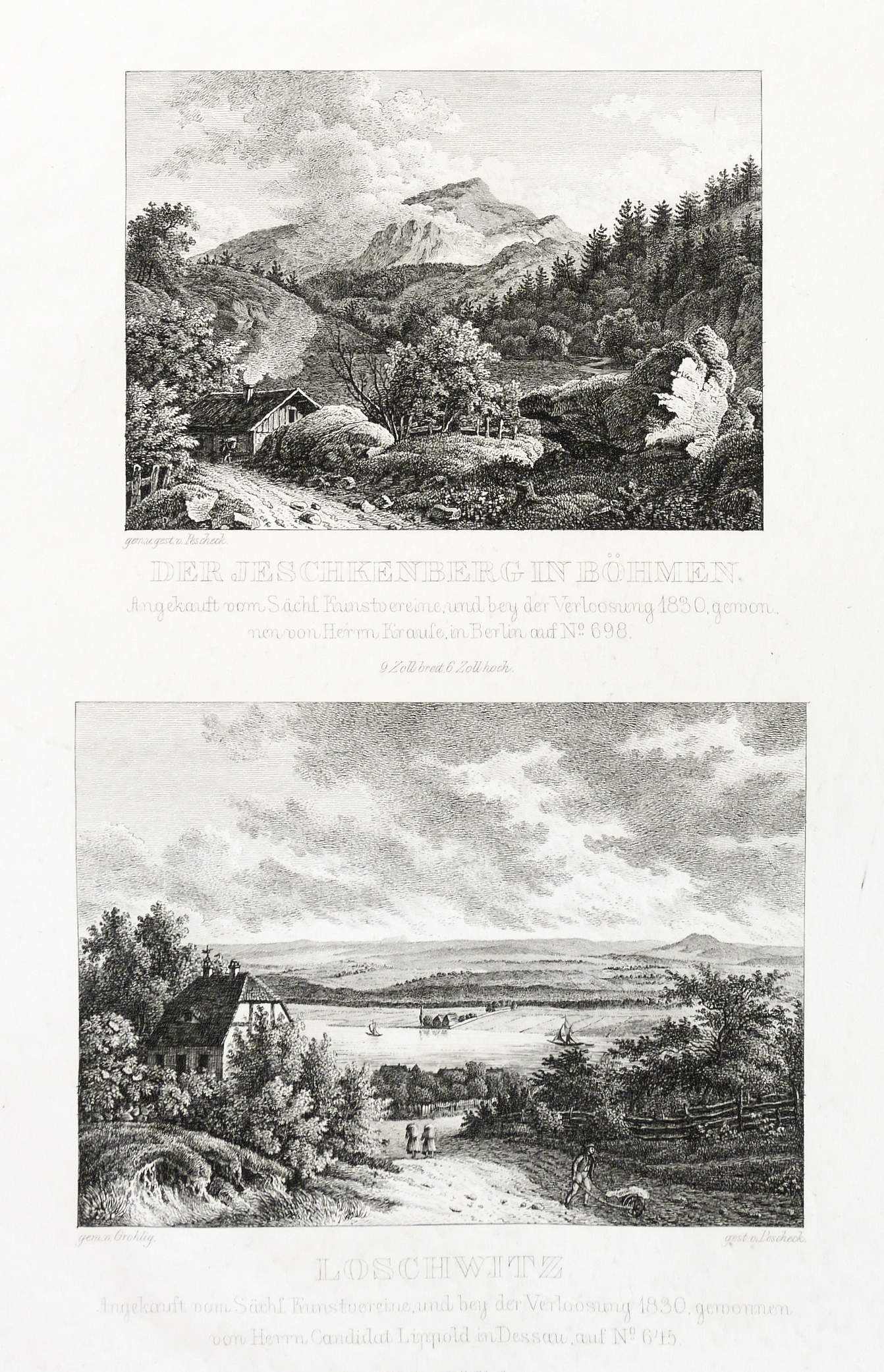 Pescheck, Carl. – Jeschken & Loschwitz. – nach Pescheck und Grohlig. – „Der Jeschkenberg in Böhmen. Loschwitz”.