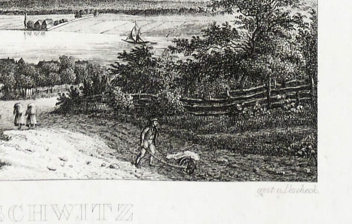 Carl Pescheck (1803 Zittau - 1847 Dresden). Auch Carl Justus Ludwig Pescheck. Deutscher Landschaftsmaler, Kupferstecher und Radierer. Studierte an der Kunstakademie Dresden bei Johann David Schubert und Johann Philipp Veith. Lebte in Dresden, zuletzt in Neuschönfeld bei Leipzig. Malte bevorzugt sächsische Landschaften und Stadtansichten. Radierte für die Sächsische Bilderchronik zwischen 1829 und 1836 insgesamt 17 Platten u.a. nach Caspar David Friedrich, Adrian Ludwig Richter und Otto Wagner.