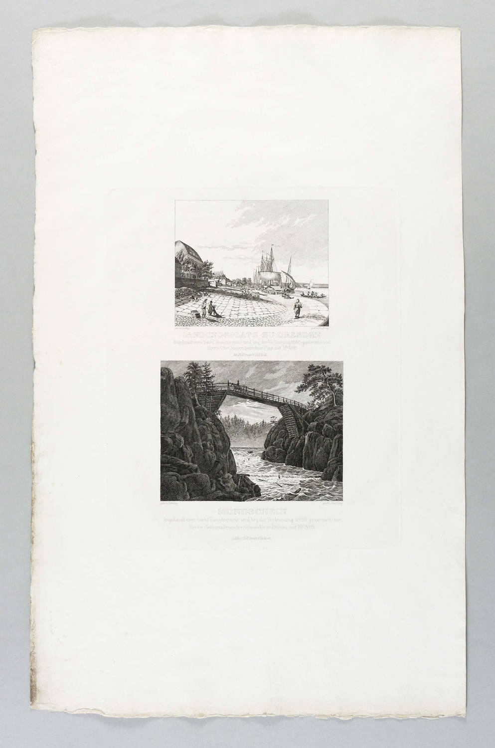 1830. Radierung / Strichätzung. – Landschaftsdarstellung, von Carl Heinrich Beichling. – 52 x 34 cm (Blatt), 9,1 x 12,9 cm (Darstellung / erste), 9,1 x 12,9 cm (Darstellung / zweite), 27,0 x 22,0 cm (Platte).