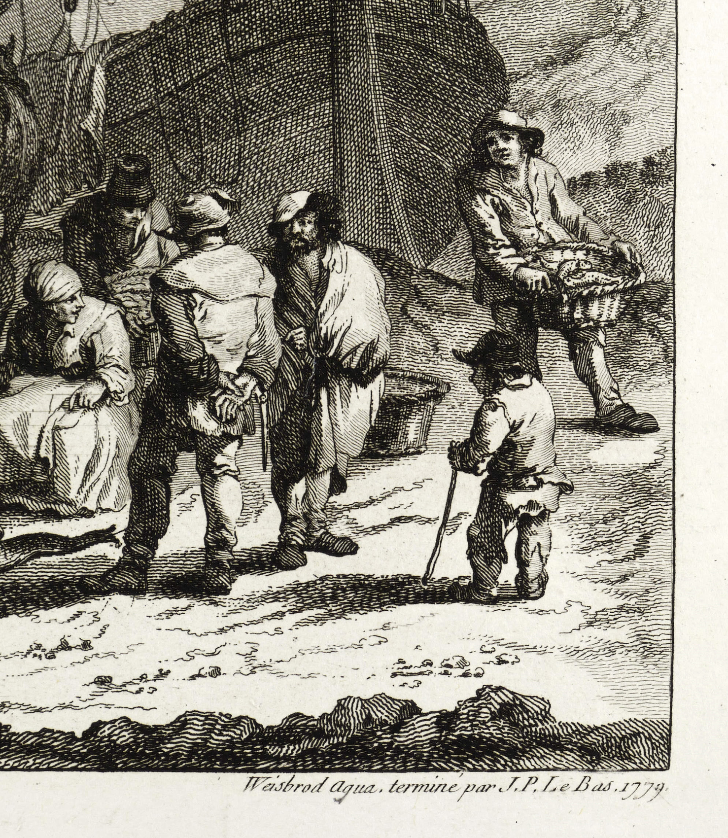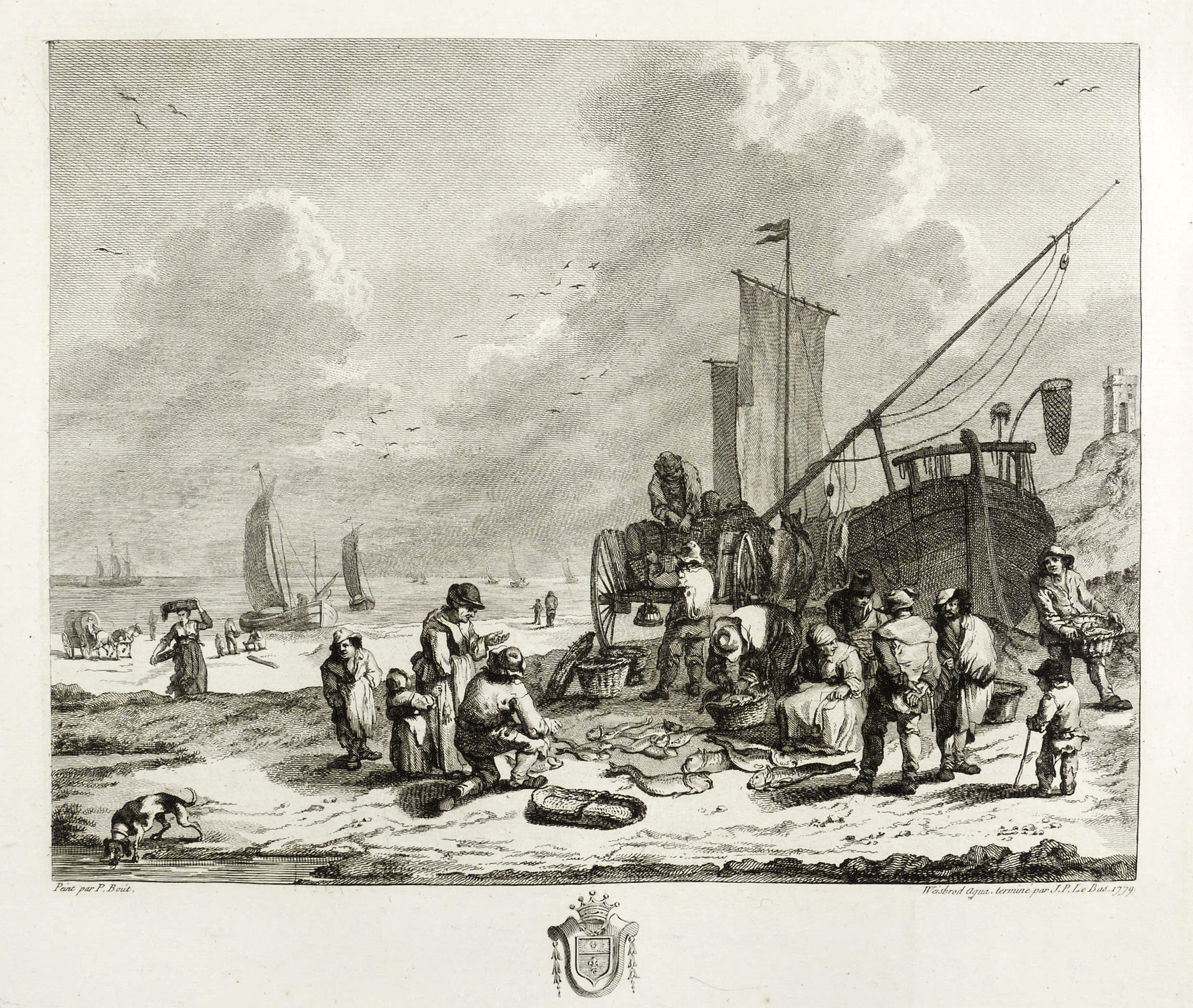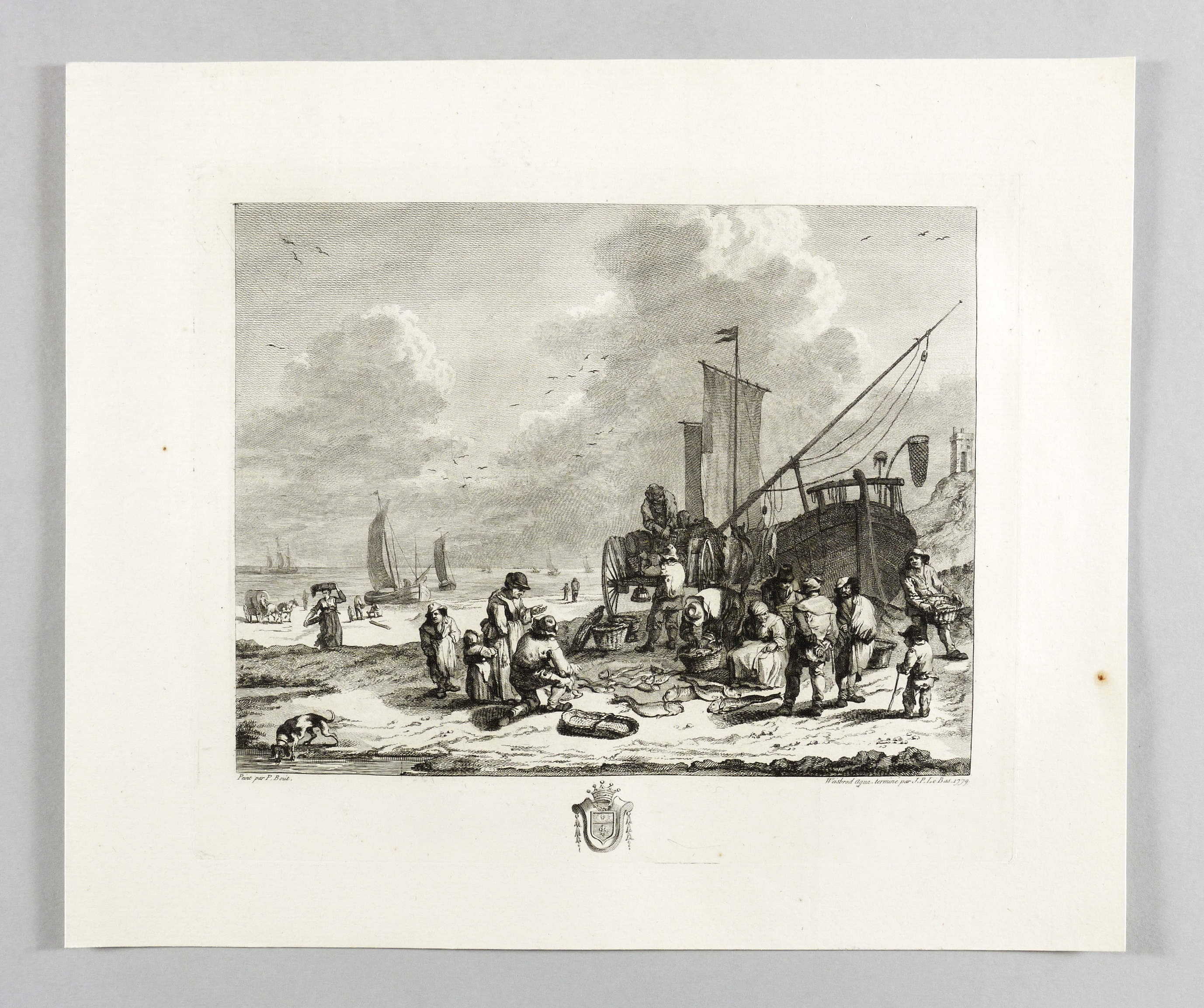Weisbrod, Carl Wilhelm & Le Bas, Jacque Philippe. – Nach Peeter Bout. – „Fischverkauf am Strand”.