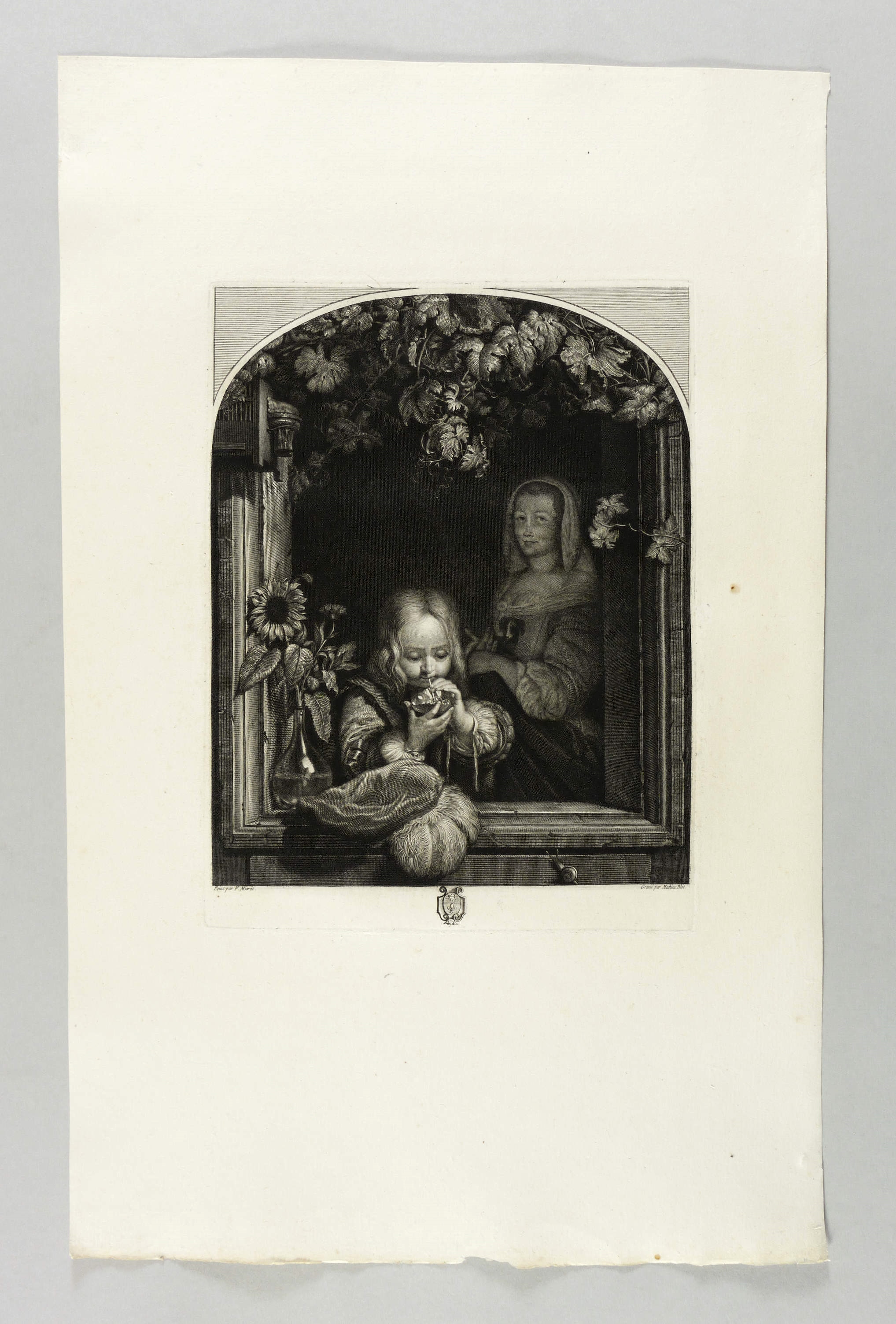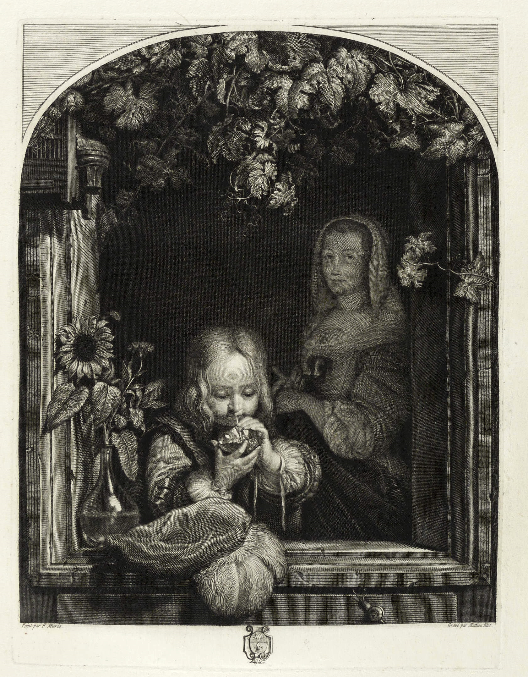 Blot, Mathieu. – Nach Frans van Mieris. – „Junge mit Seifenblasen”.