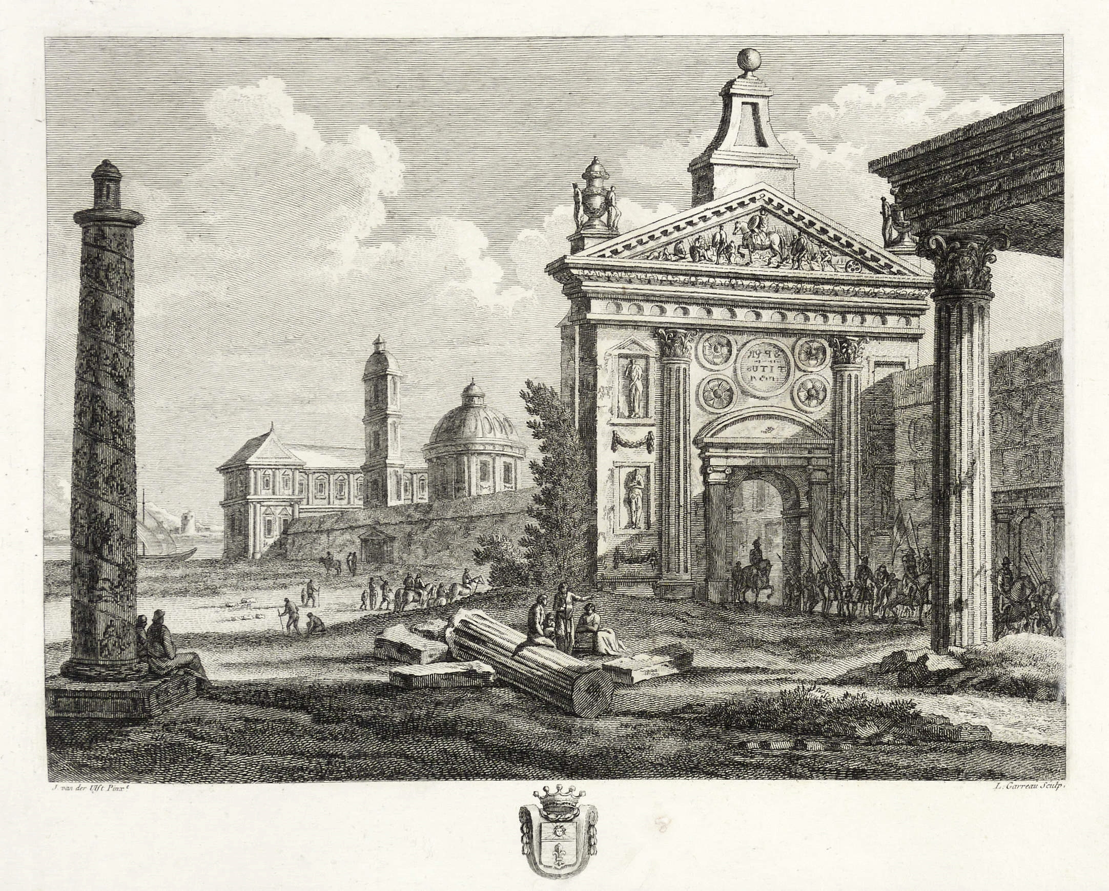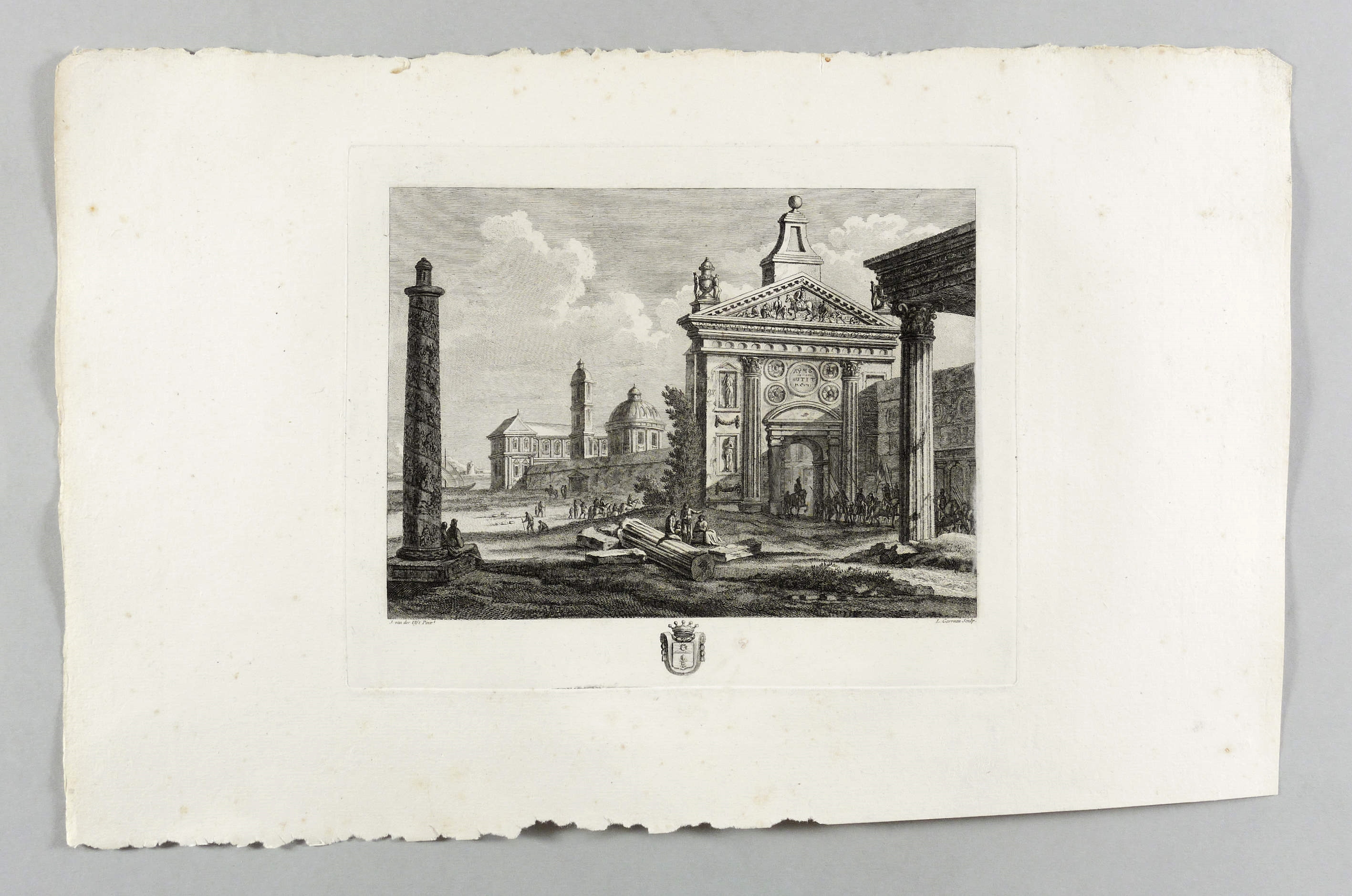 Garreau, Louis. – Nach Jacob van der Ulft. – „Römische Architektur mit Kirche im Hintergrund”.
