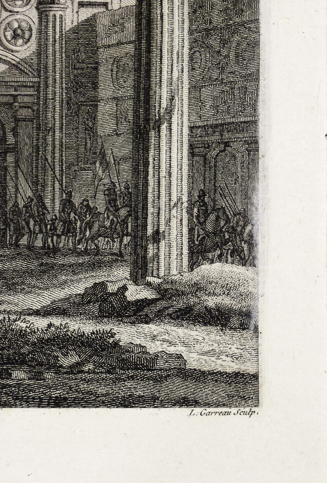 1792. Radierung / Strichätzung. – Originale Künstlergrafik, von Louis Garreau. – 15,2 x 20,6 cm (Darstellung), 19,0 x 23,4 cm (Platte), 28 x 43 cm (Blatt).