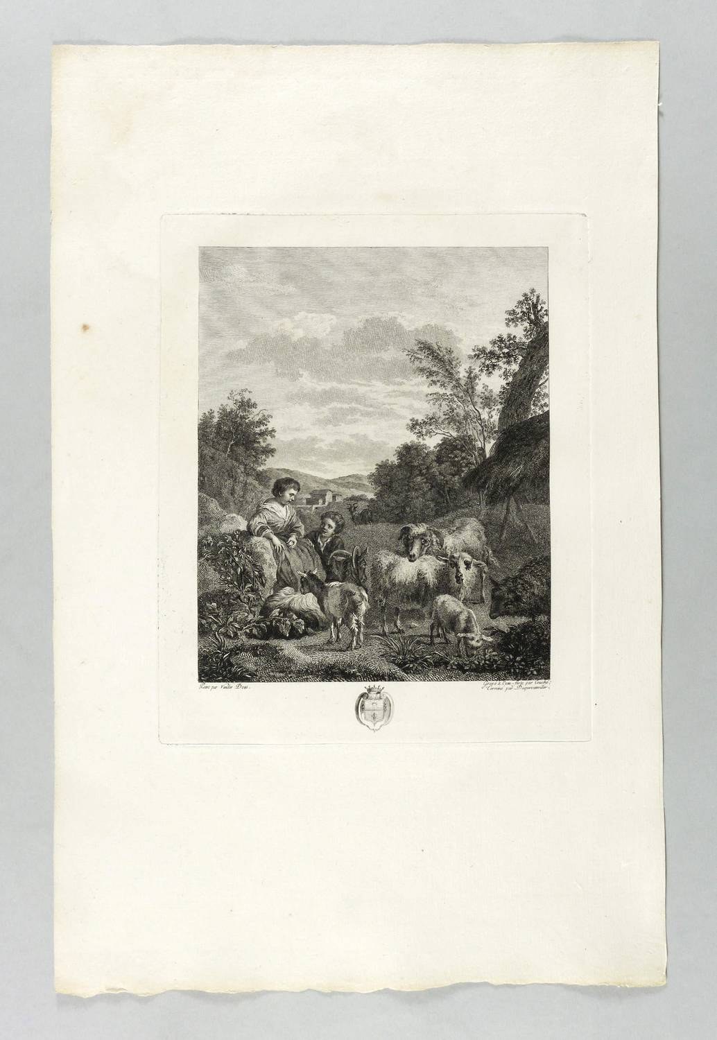 1792. Radierung / Strichätzung. – Originale Künstlergrafik, von Jacques Couché & François Dequevauvillier. – 19,7 x 15,9 cm (Darstellung), 24,0 x 19,7 cm (Platte), 43 x 27,5 cm (Blatt).