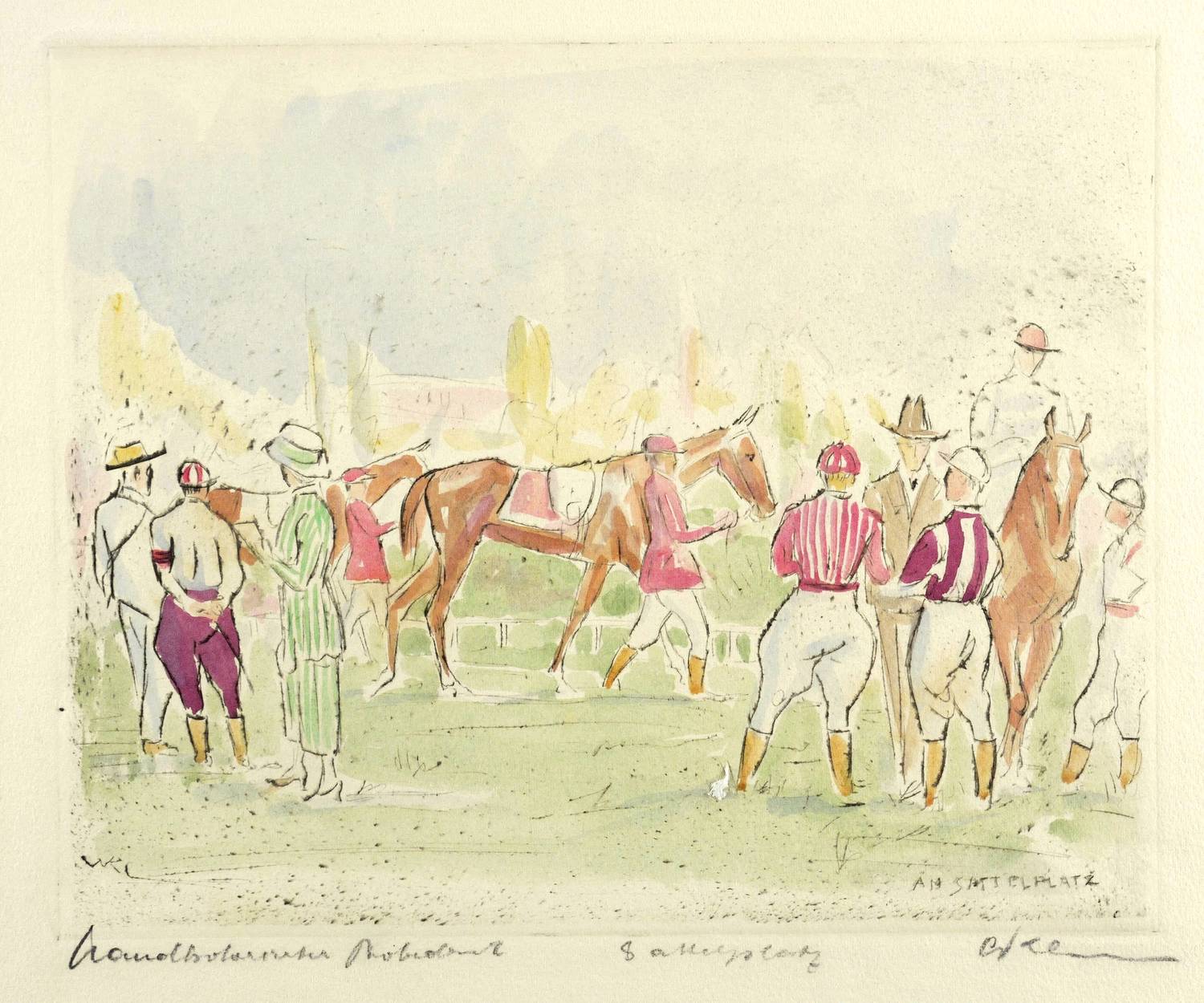 Unten rechts in Bleistift signiert, in der Mitte betitelt und links bezeichnet ″handkolorierter Probedruck″. Zudem in der Platte signiert und betitelt. – Guter Zustand.