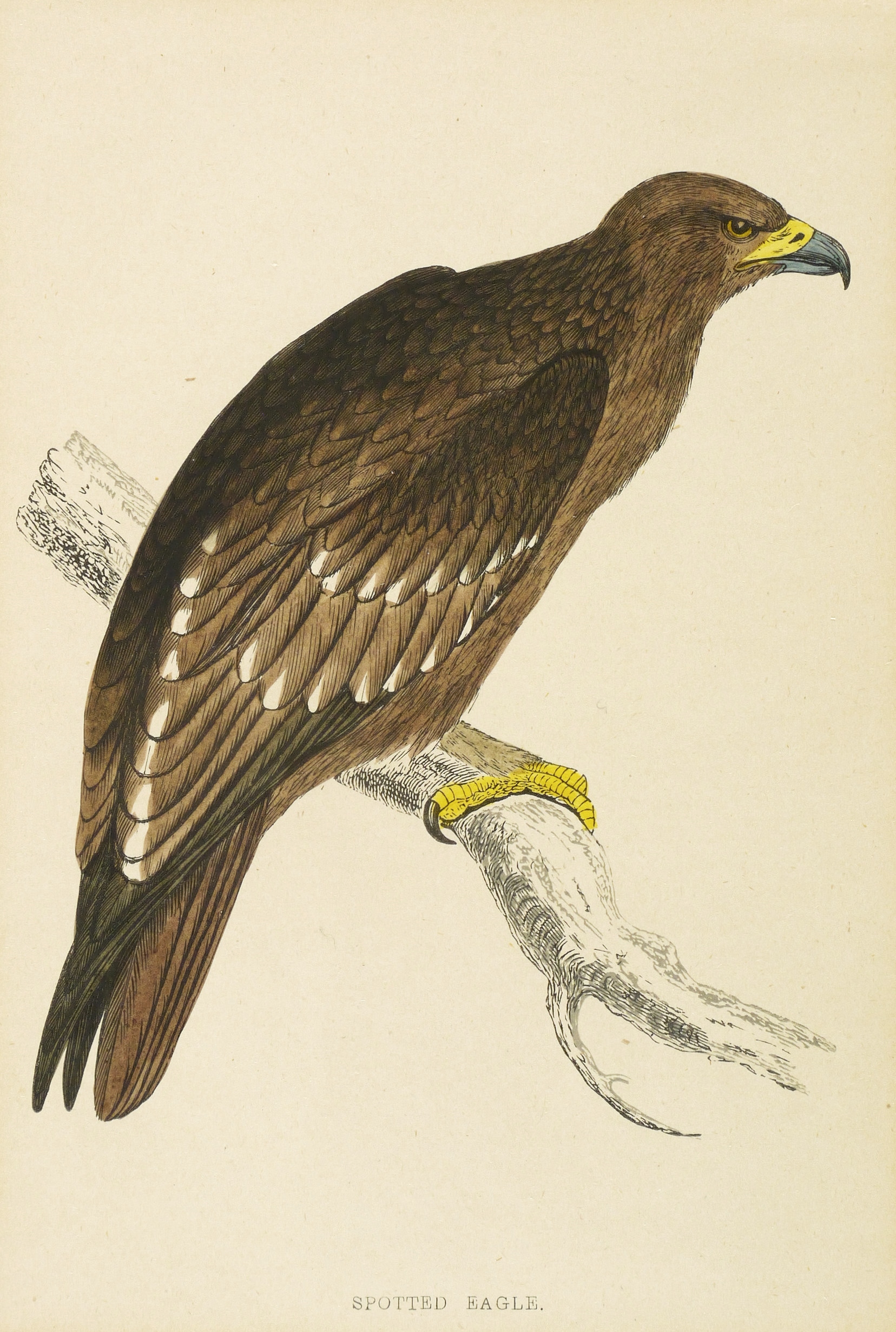 Aus: Francis Orpen Morris, A history of British birds (London: Groombridge and Sons 1865). – Unterhalb der Darstellung betitelt. – Synonym: Aquila clanga. – Guter Zustand.