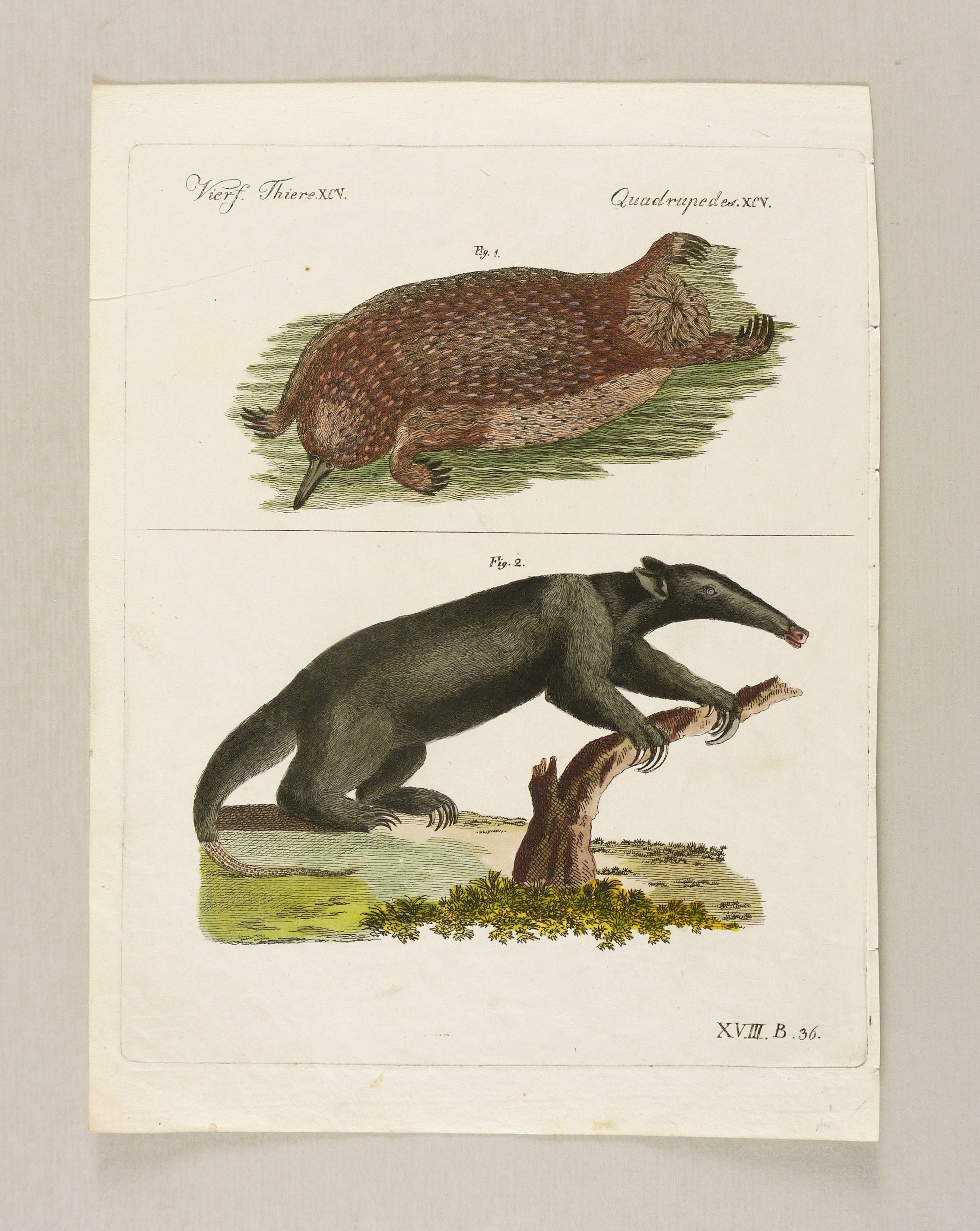 Ameisenigel & Ameisenbären. – Kurzschnabel-Ameisenigel & Südlicher Tamandua. – Friedrich Justin Bertuch.
