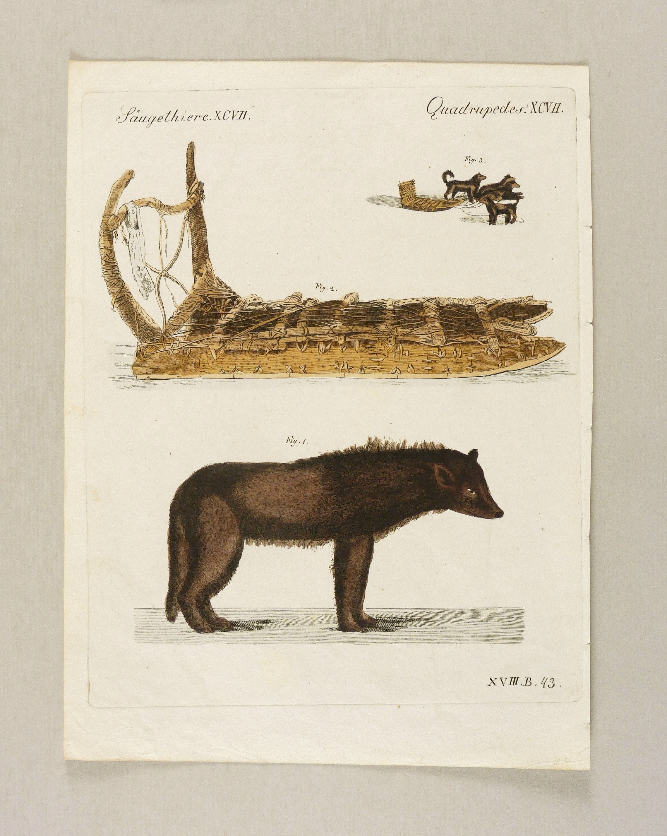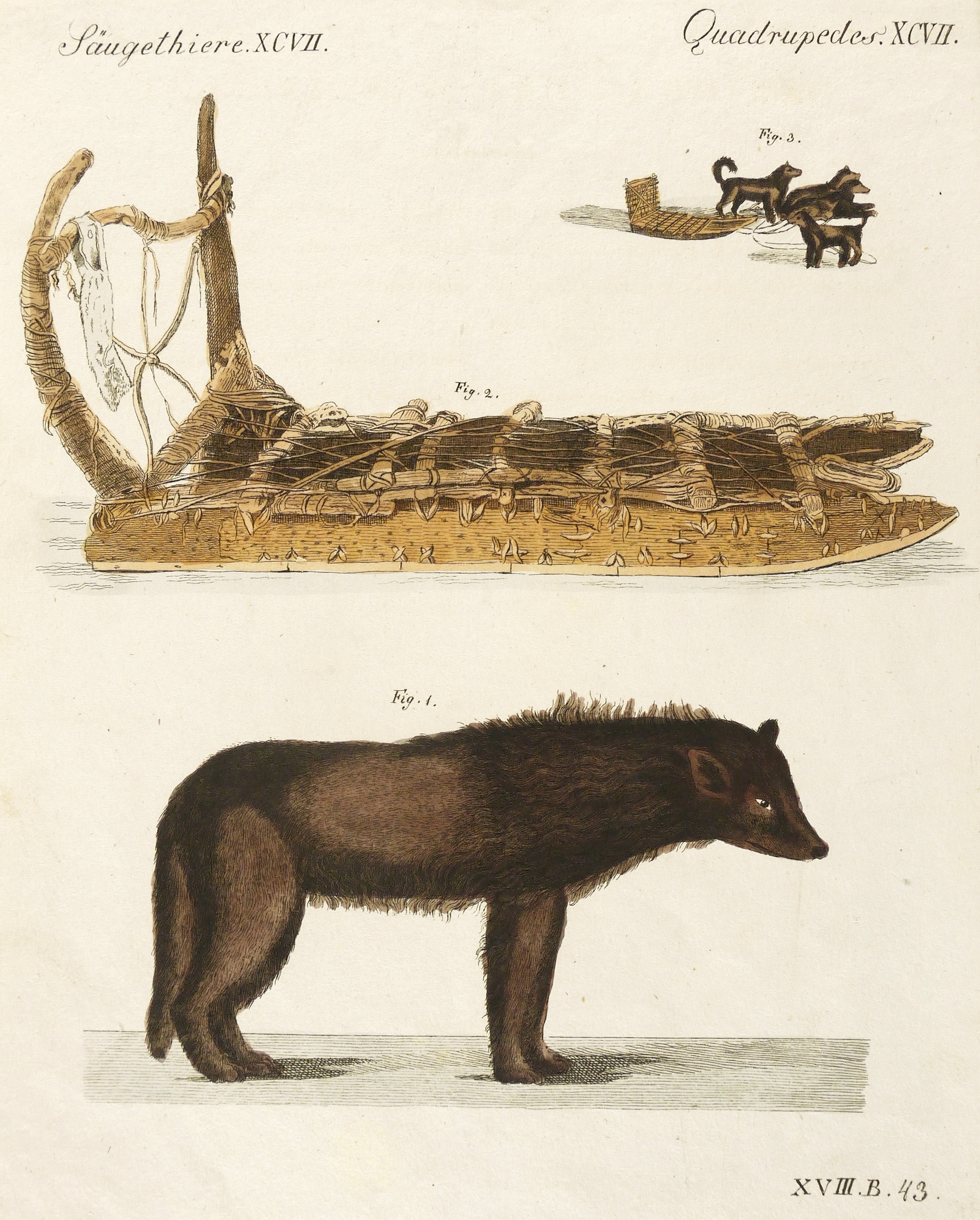 Hunde. – Schlittenhund & Schlitten. – Friedrich Justin Bertuch.