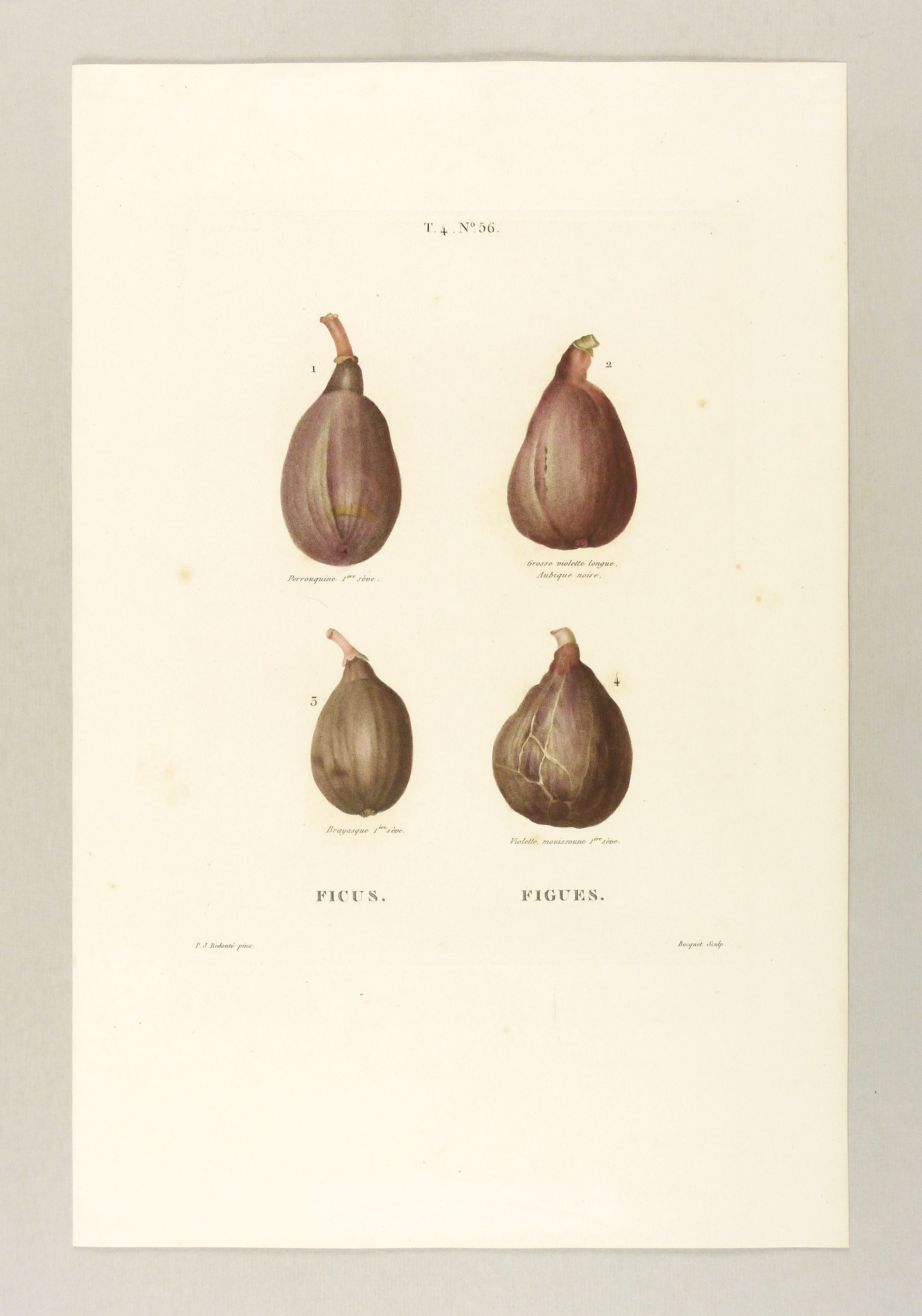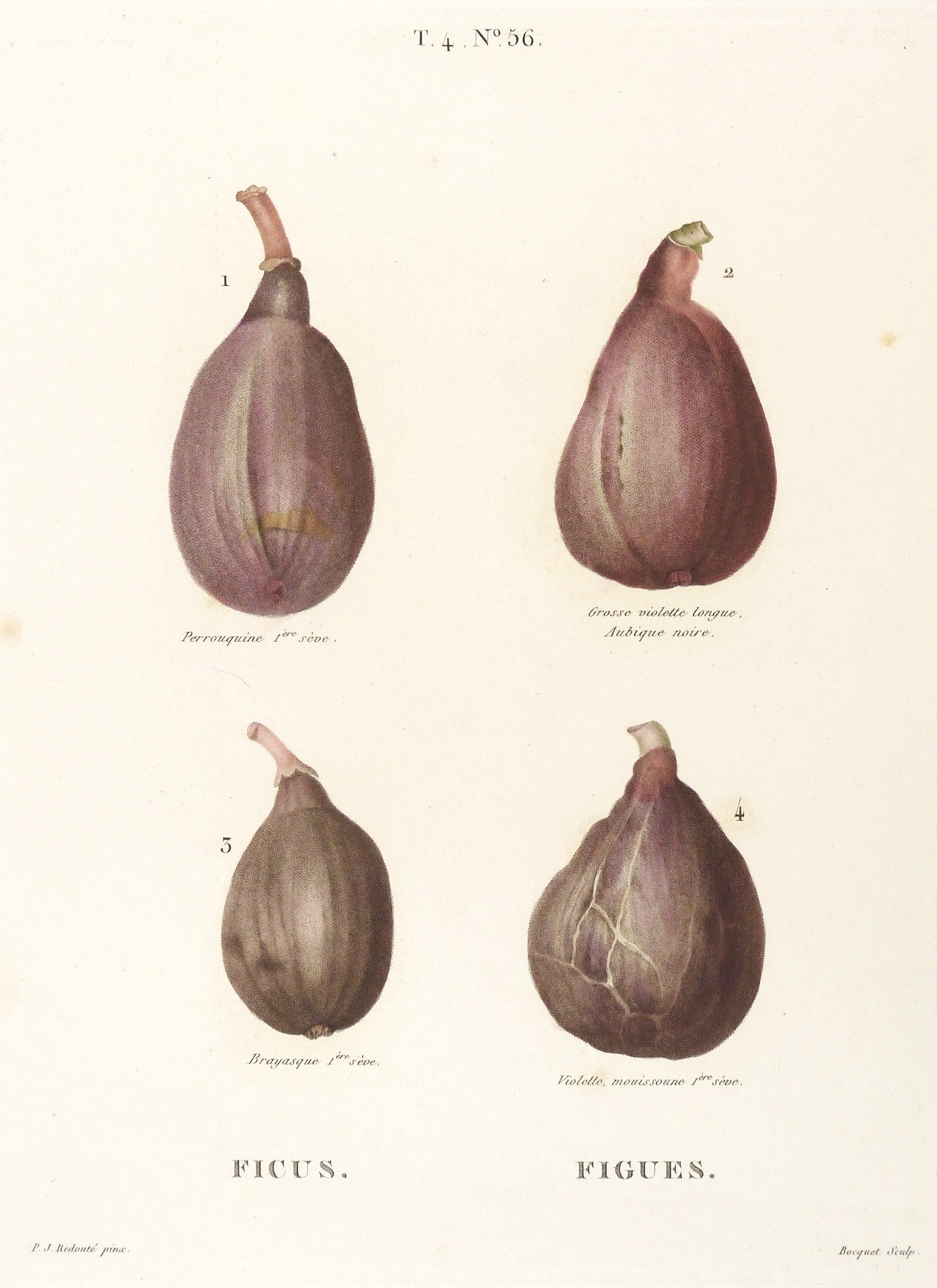 Maulbeergewächse. – Echte Feige. - Früchte. – nach Redouté. – „Ficus. Figues”.