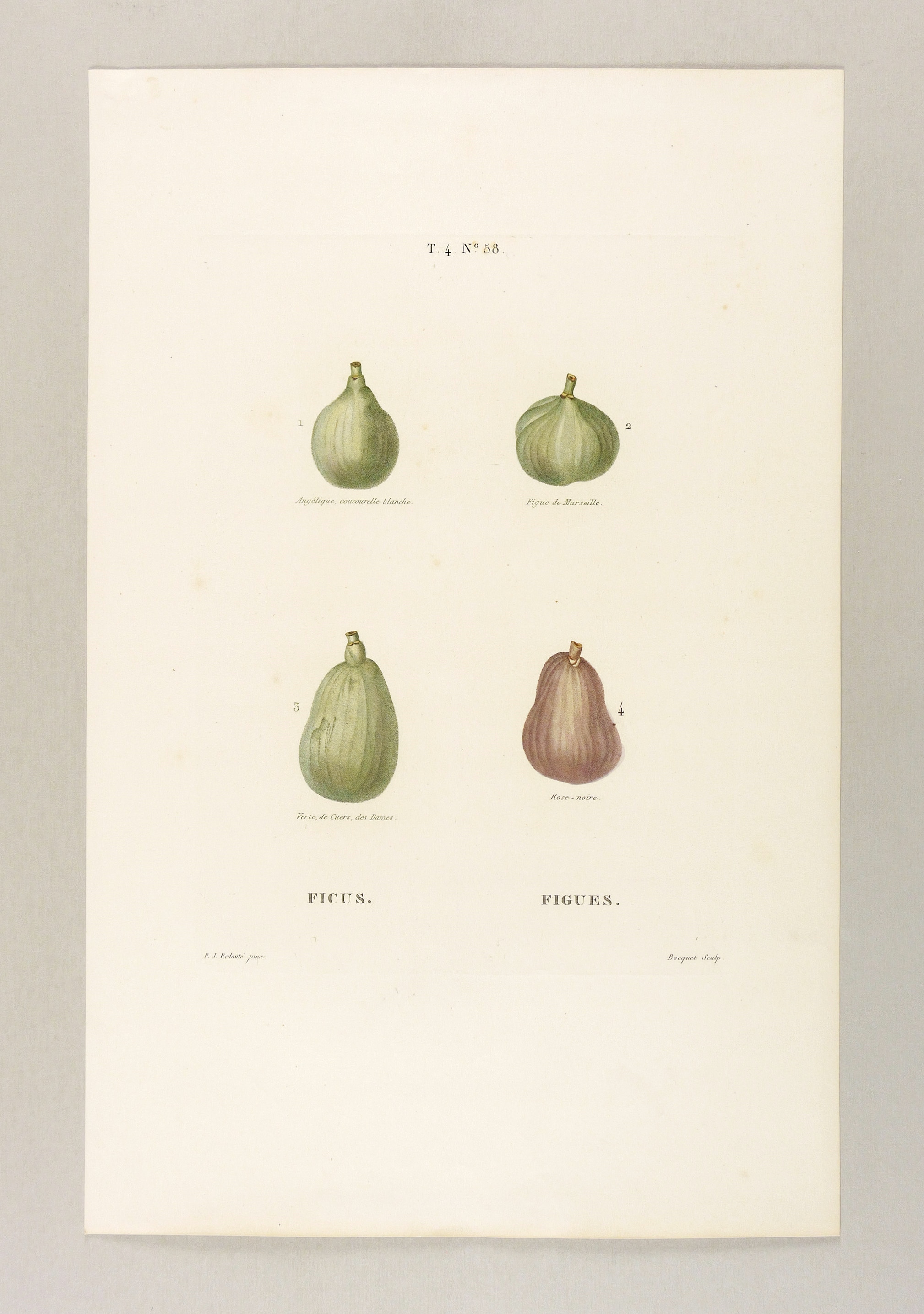 Maulbeergewächse. – Echte Feige. - Früchte. – nach Redouté. – „Ficus. Figues”.