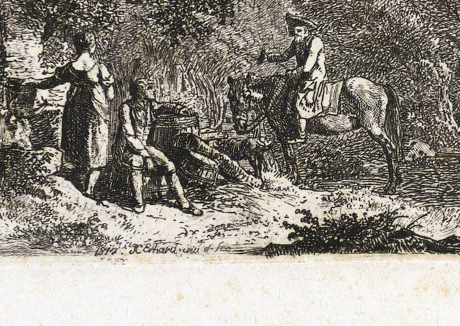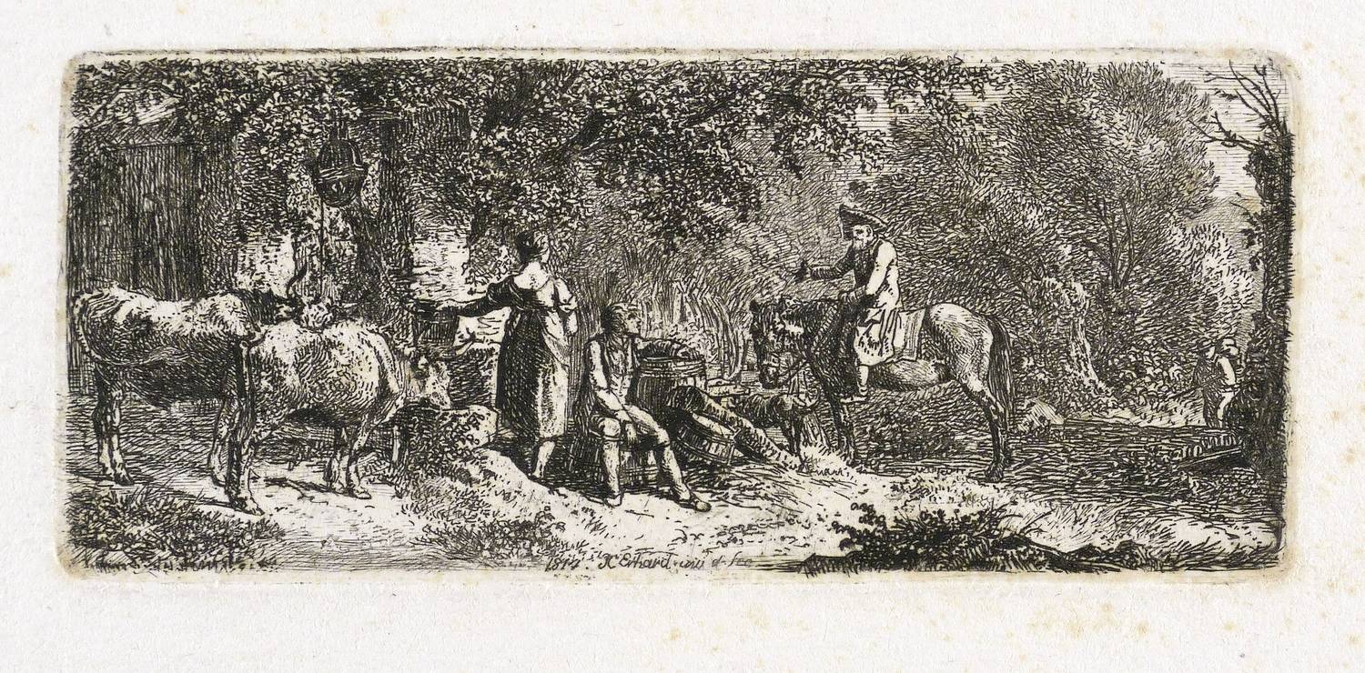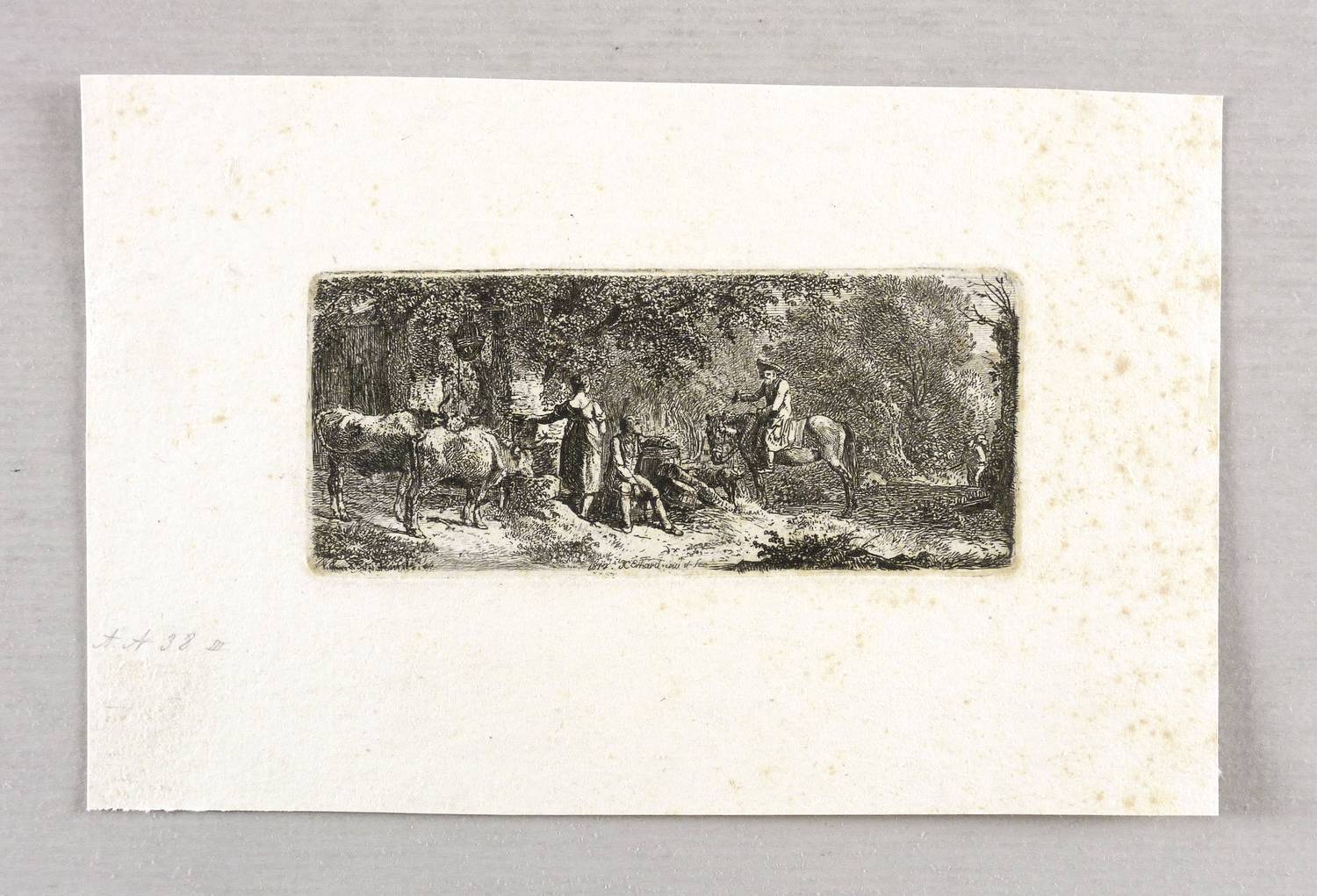 Apell 38 III (von III). – In der Platte links unten signiert und datiert: ″1814 J.C. Erhard inv. et fec.″ – Abzug vom dritten Zustand der Platte mit allen Vollendungen. – Provenienz: Sammlung Friedrich Julius Arndt (genannt Fritz Arndt, 1856-1919, Besitzer des Klosterguts Oberwartha bei Dresden), ab 1919 Sammlung Dr. Theodor Arndt, Dresden- Blasewitz. – Papier durchgehend etwas stockfleckig. Mäßig guter Zustand.