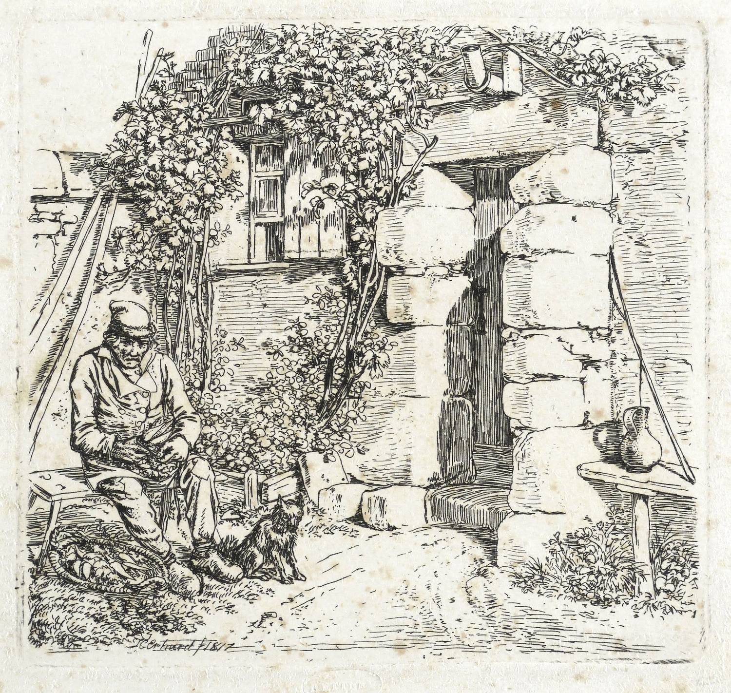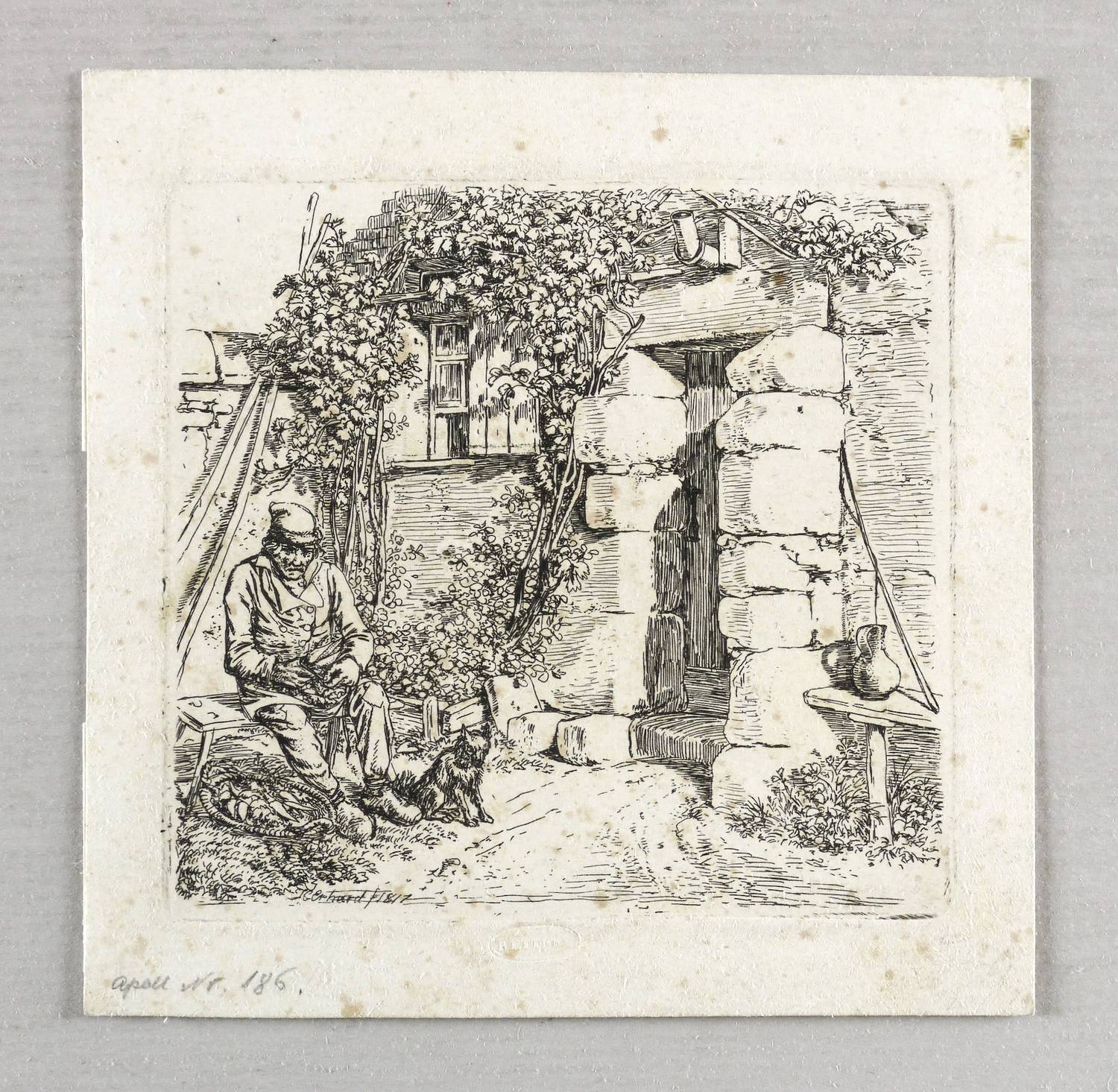 Apell 186. – In der Platte links unten signiert und datiert: ″JC Erhard f 1817″. Unterhalb Trockenstempel des Wiener Kunstverlegers Ferdinand Kettner. – Provenienz: Sammlung Friedrich Julius Arndt (genannt Fritz Arndt, 1856-1919, Besitzer des Klosterguts Oberwartha bei Dresden), ab 1919 Sammlung Dr. Theodor Arndt, Dresden- Blasewitz. – Papier mit normalen Alterspuren. Verso in den Rändern diverse Montagereste. Guter Zustand.