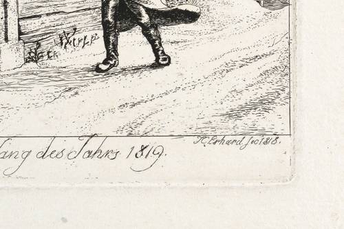 1818. Radierung / Strichätzung & Kaltnadel, in Schwarz, auf kräftigem leicht genarbtem Velin. – Originale Künstlergrafik, von Johann Christoph Erhard. – 10,1 x 12,6 cm (Darstellung / Einfassungslinie), 14,3 x 15,9 cm (Blatt), 11,7 x 13,2 cm (Platte).