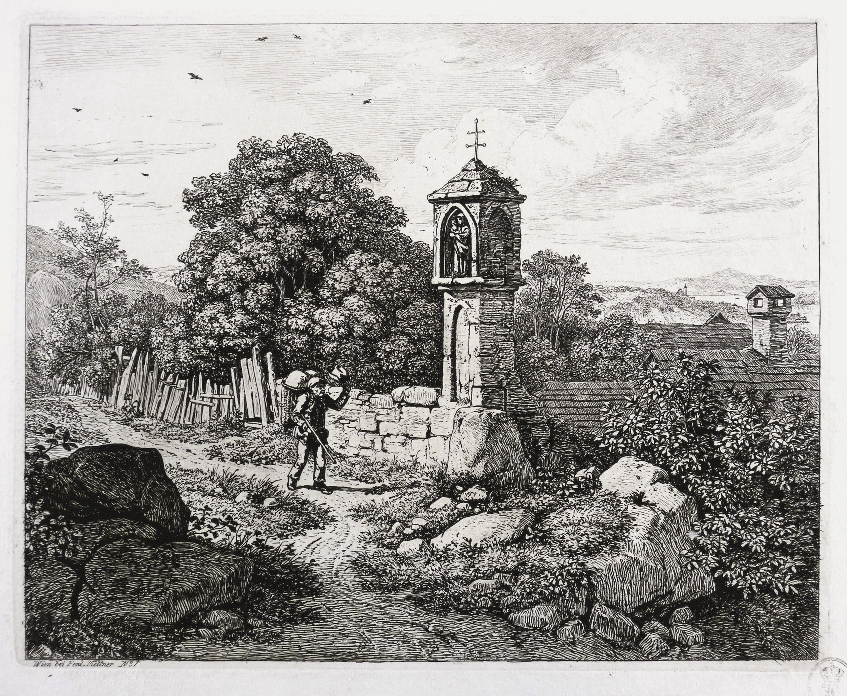 Erhard, Johann Christoph. – Die großen Landschaften mit den Betsäulen. – „Der das Marienbild grüssende Bauer”.