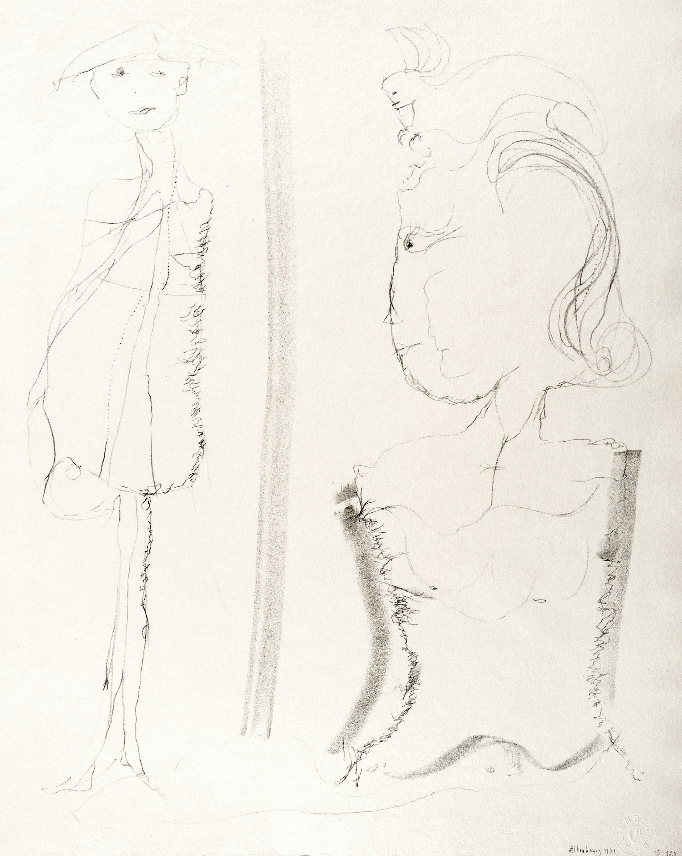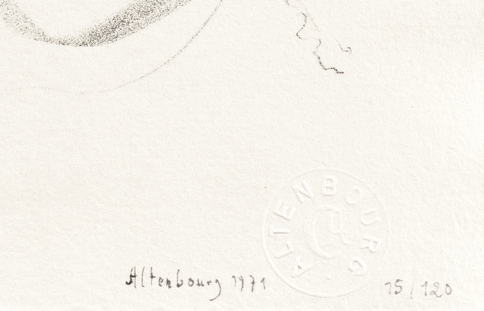 1971. Lithografie / Kreidelithografie, auf kräftigem rauem Bütten. – Originale Künstlergrafik, von Gerhard Altenbourg. – Auflage Exemplar Nr. 15/120. – 45,5 x 35,5 cm (Darstellung), 50 x 40 cm (Blatt).