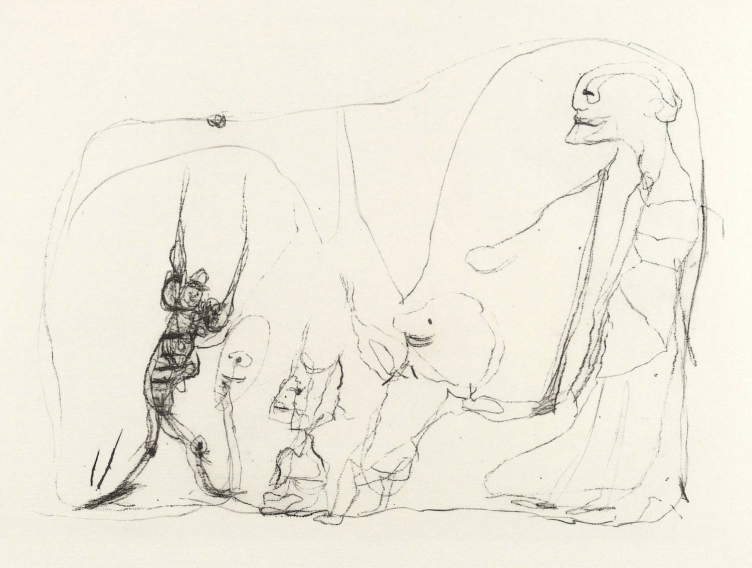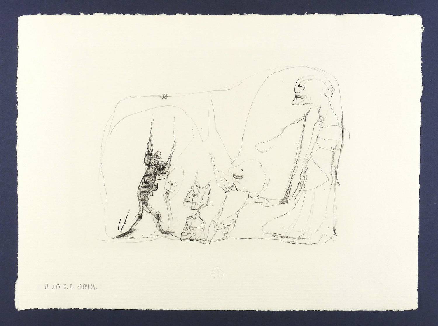 1968/1989. Lithografie / Kreidelithografie, in Schwarz, auf gelblichem Fabriano-Italia-Bütten. – Originale Künstlergrafik, von Gerhard Altenbourg. – Auflage 17 Exemplare. – 29,5 x 41,5 cm (Darstellung / Druckbild), 49 x 67 cm (Blatt).