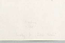 Gerhard Altenbourg (1926 Rödichen-Schnepfetal - 1989 Meißen). Deutscher Maler und Grafiker. 1929 Umzug nach Altenburg. 1944-45 Soldat im Zweiten Weltkrieg. 1946-48 als Schriftsteller und Journalist tätig, Zeichenunterricht bei Erich Dietz. 1948-50 Studium an der Hochschule für Baukunst und Bildende Kunst in Weimar bei Hans Hoffmann-Lederer. 1959 Teilnahme an der documenta II in Kassel. 1961 Gastatelier an der Kunstakademie in Westberlin. 1961 Erwerb einiger Arbeiten durch das Museum of Modern Art in New York. 1962-89 Atelier in Altenburg, Annahme des Künstlernamens "Altenbourg". 1966 Burda-Preis für Grafik in München. 1968 Will-Grohmann-Preis in Westberlin. 1970 Mitglied der Akademie der Künste, Berlin. 1977 Teilnahme an der documenta 6 und Mitgliedschaft bei der „Life Fellow of the International Biographical Association“ in Cambridge. In den 1980er Jahren Ausstellungsverbot und Schließung der Ausstellungen, da er sich den offiziellen Kunstauffassungen der DDR widersetzte. Seit 1998 vergibt das Lindenau-Museum in Altenburg aller zwei Jahre den Gerhard-Altenbourg-Preis.
